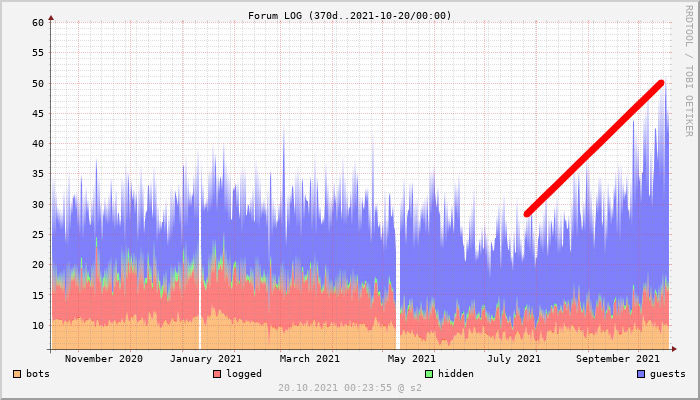 Růst návštěvnosti fóra od doby cca založení tohoto tématu.