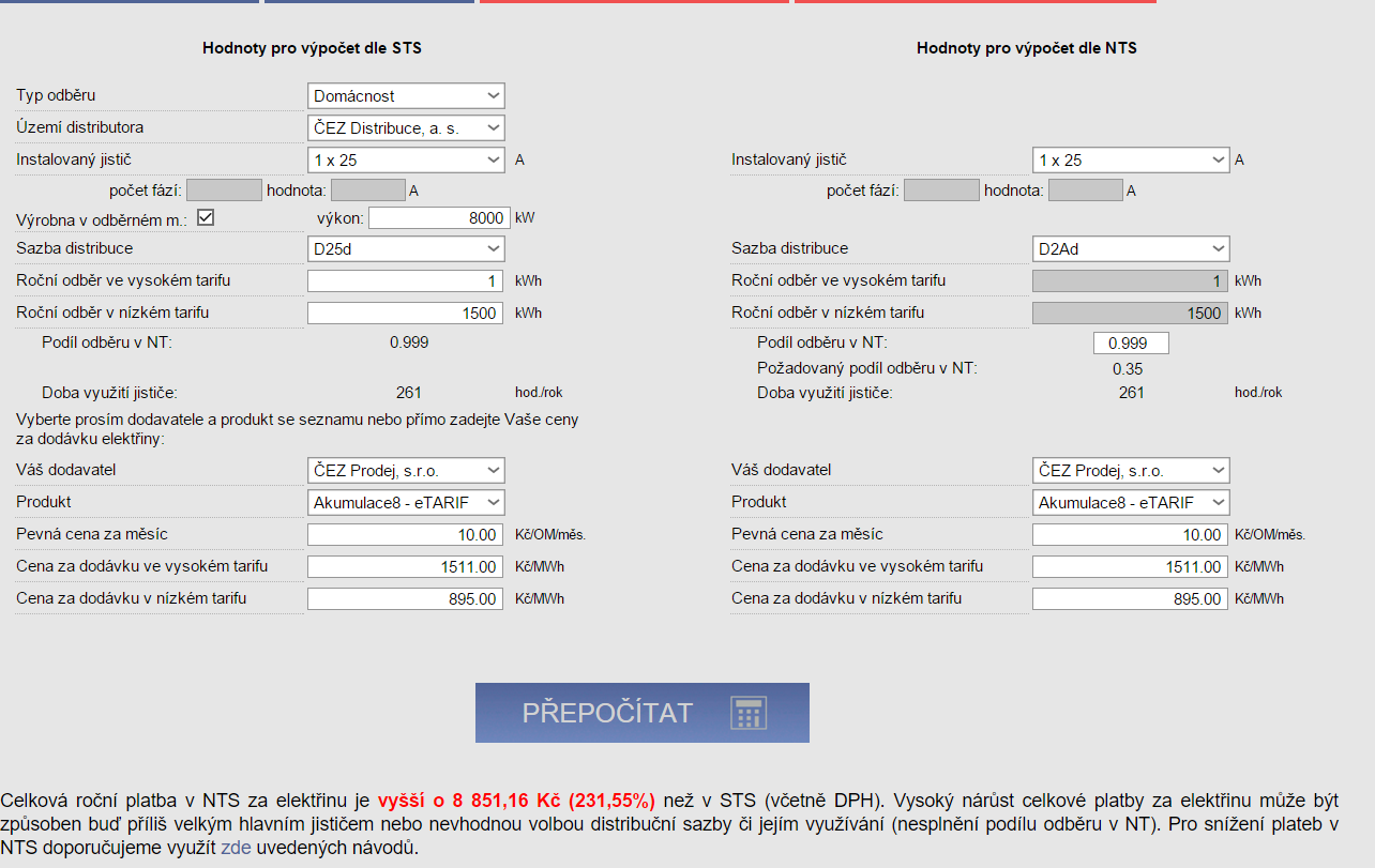 Dále jsem si všimnul že v kalkulačce elektřiny na Eru je políčko Výrobna v odběrném m.To když zatrhnu,a dám výkon elektrárny,Rázem mě vychazí o rovných 200% navýšení elektřiny.