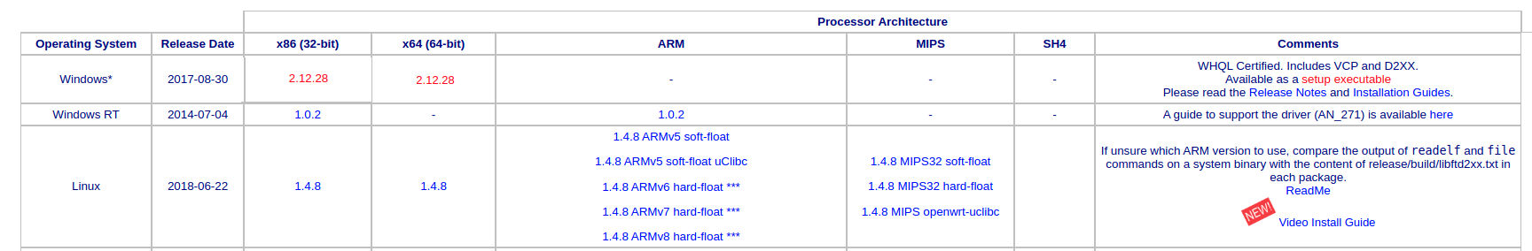 Takže inak. Isť na stránku FTDI v linkoch vyššie a vybrať toto, červenou 2.12.28 alebo setup executable :