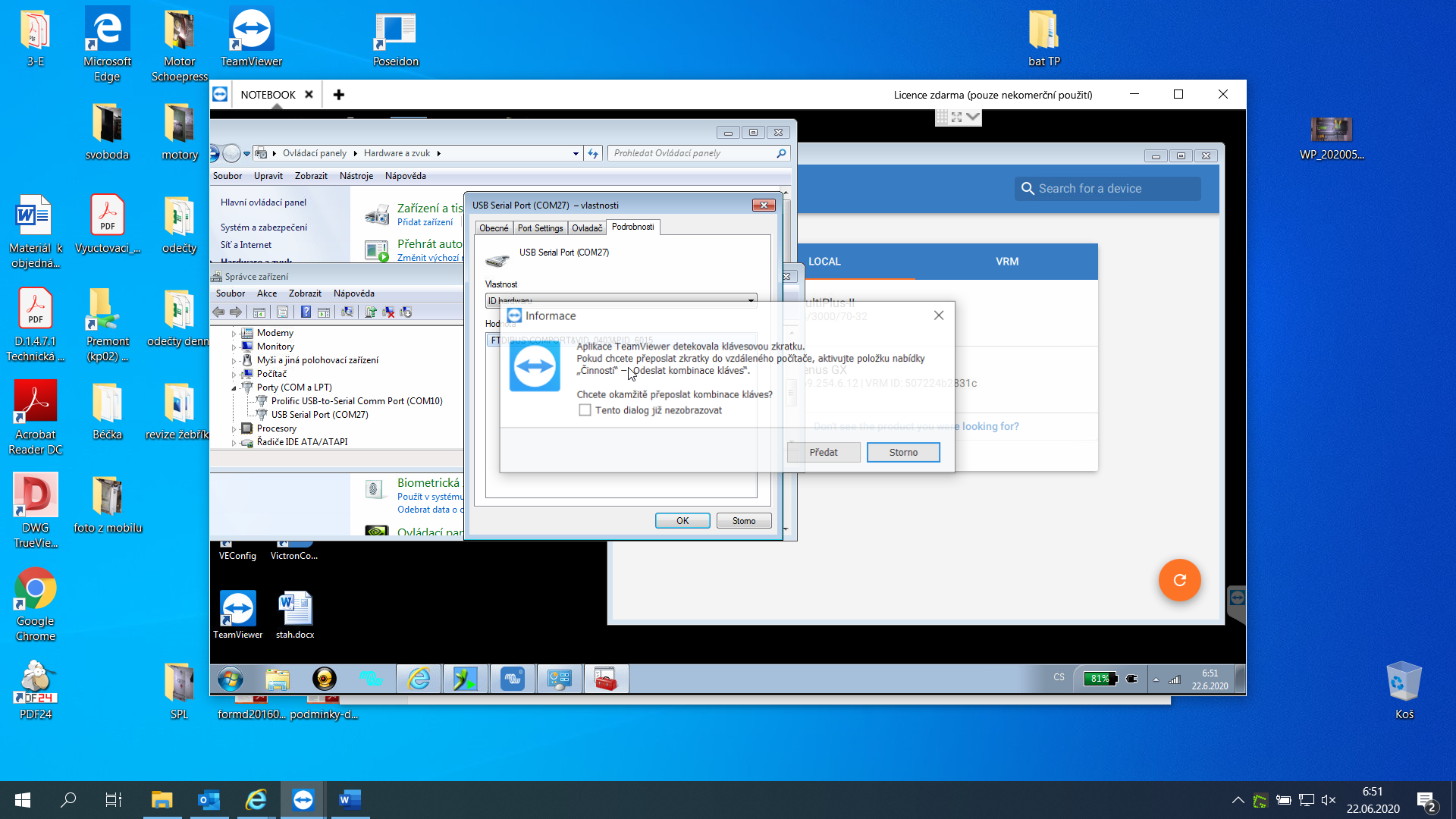 To okno z team vievera navrchu , je protože jsem dělal printscreen dálkově - je tam potom vidět ten požadovaný ovladač , který stačí najít na netu a nainstalovat.