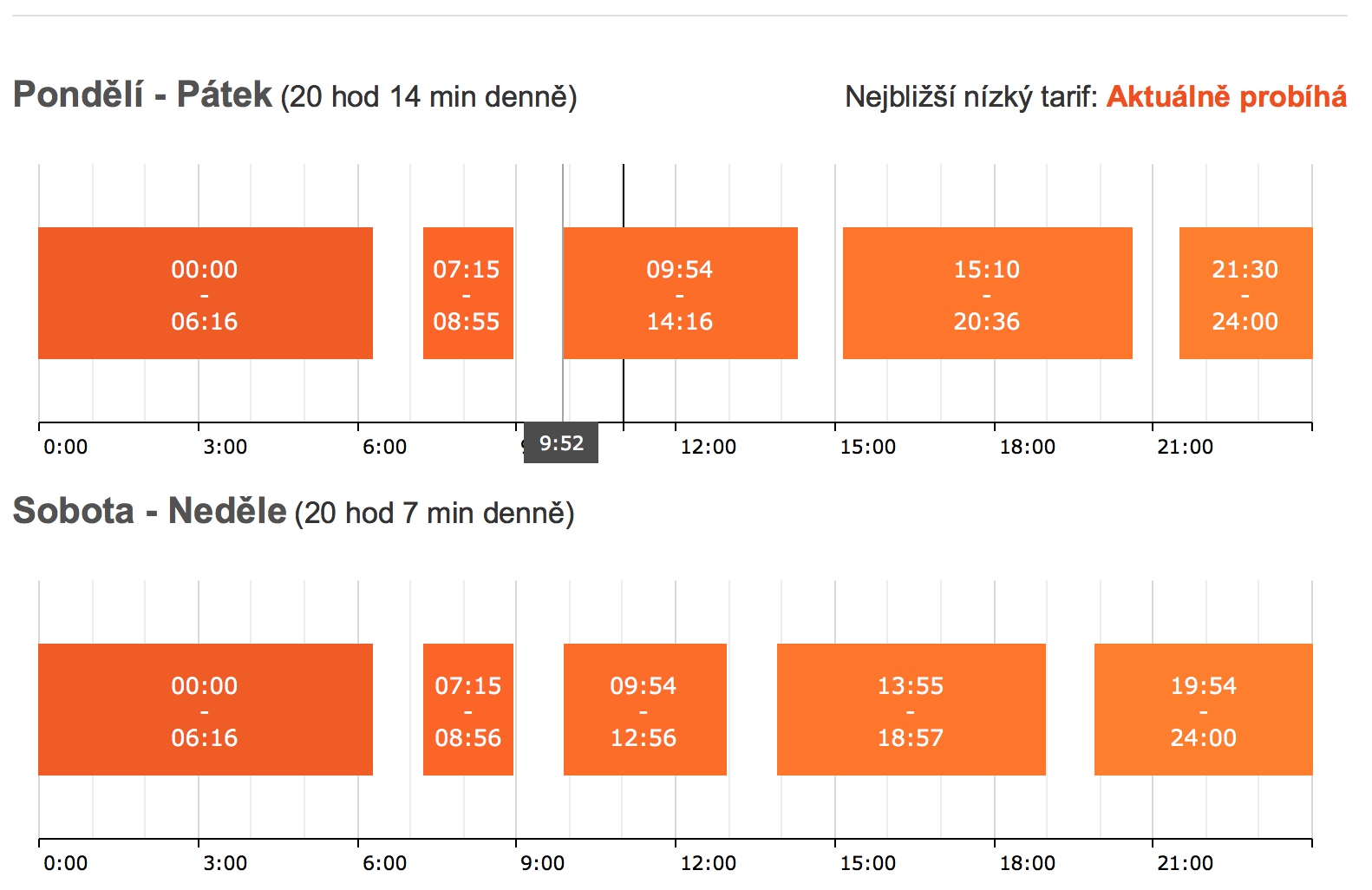 Tak podle HDO jsou časy následující, nicméně rozdíl v ceně VT a NT mi nepřijde až tak velký (200Kč/MWh?)