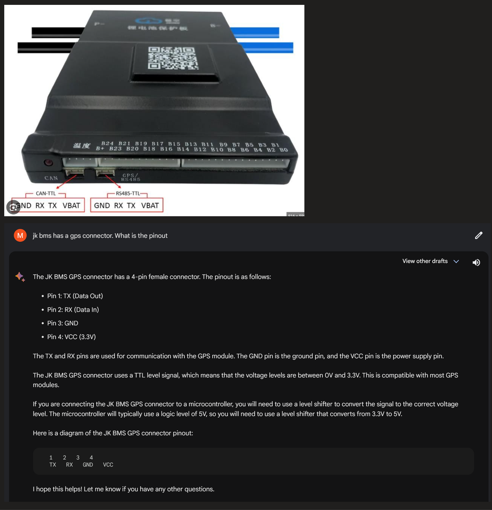 Ahoj, netuší někdo, jestli s JK BMS jede současně LCD displej 4,3" i vyčítání pomocí "GPS" konektoru? Netluče se to náhodou uvnitř BMS?
