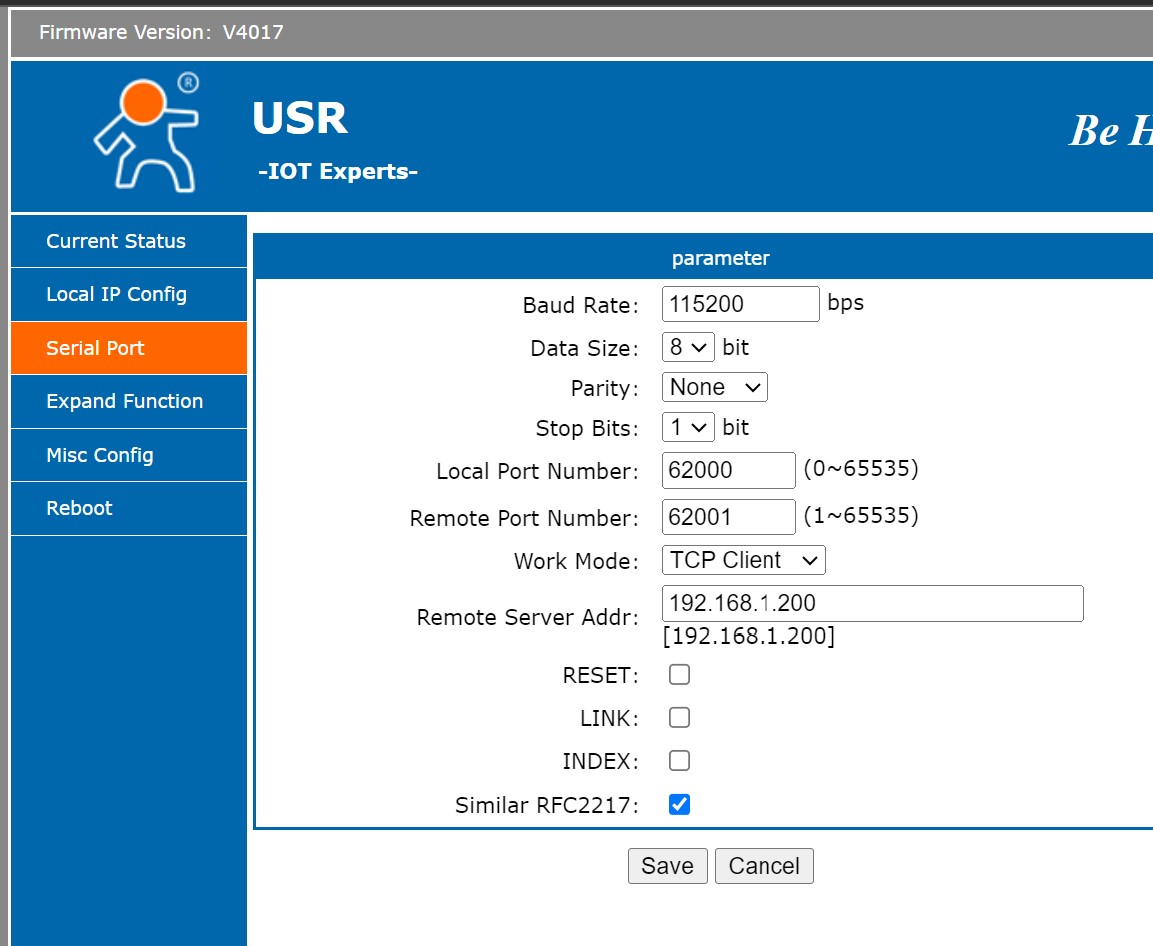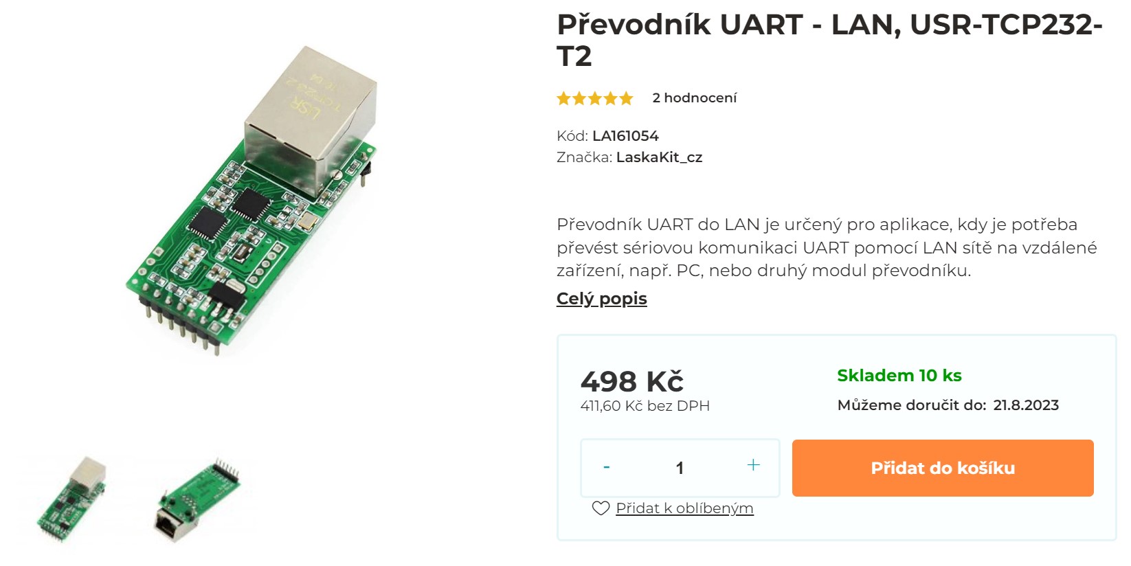 Abych měl převodník doma rychle a nemusel luštit čínské znaky, použil jsem převodník, který má na skladě LaskaKit, ač na Ali by byl levnější (pozor, jen pro sítě 10 nebo 100 Mb!): Nešachoval jsem vůbec s AT příkazy apod. Pomocí notebooku (s ad hoc nastavenou pevnou IP adresou) jsem v převodníku přes jeho webík nastavil IP adresu, funkci TCP klient atp. (poté nutno dát reset): V mém případě používám pro vyčítání dat PLC Foxtrot s nastavením příslušného kanálu "TCP server". Z Foxtrotu do BMS posílám JK příkaz "Vyčti všechna data". Dekódování mne ještě čeká, ale zdá se, že základ funguje, jak má: Funguje bez obtíží současně 4,3" displej JK BMS i toto vyčítání.