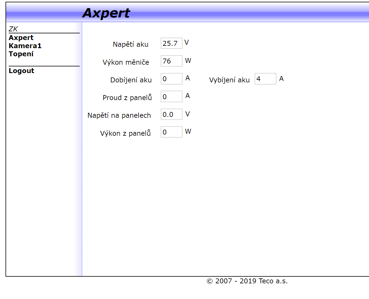 Díky velké laskavosti dumiho (i bratrů FCC) už mi chodí připojení na Axpert, takže jsem mohl začít dělat "Monitorování v 2.0" - zatím je vše pravda poněkud rustikální