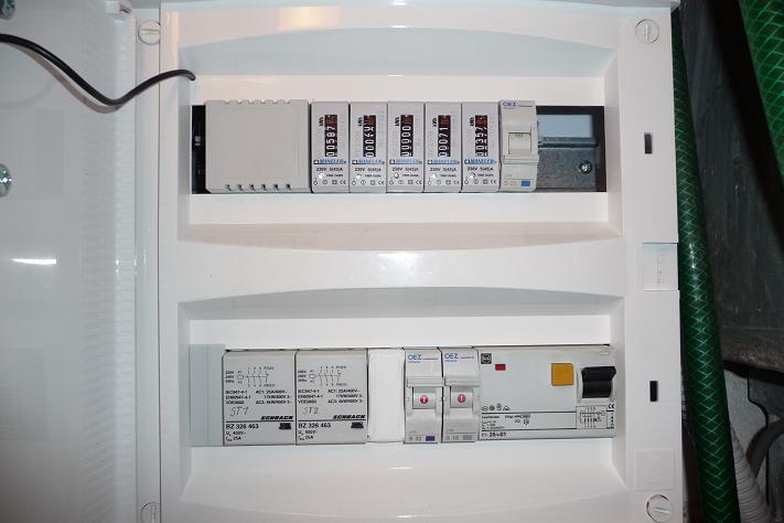 Žeprej dva elektroměry ...... taky fíčko , jističe (in / out) , stykače a část ovládání Jo , a na dvířkách přibastlená kamera automatického odečtu elektroměrů