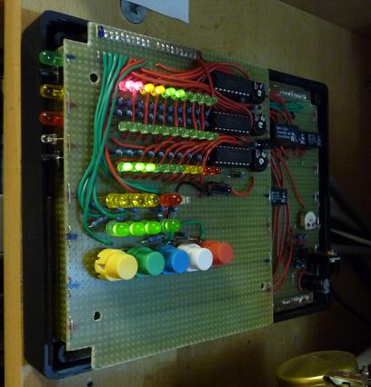 Takhle nějak vypadá dálkové ovládání (ve výstavbě) : První řada LED - stav aku , druhá řada LED - výkon FVE , třetí řada LED - odběr baráku .