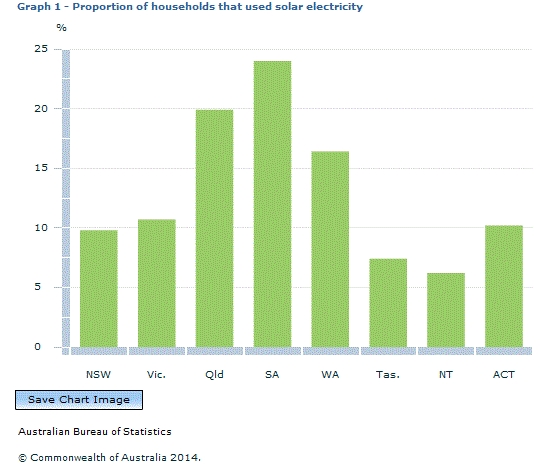 Aký význam to má pre samotnú Austráliu, vyplýva z grafu na príbuzných stránkach. Ide o % domácností v jednotlivých častiach krajiny, využívajúcich FV.