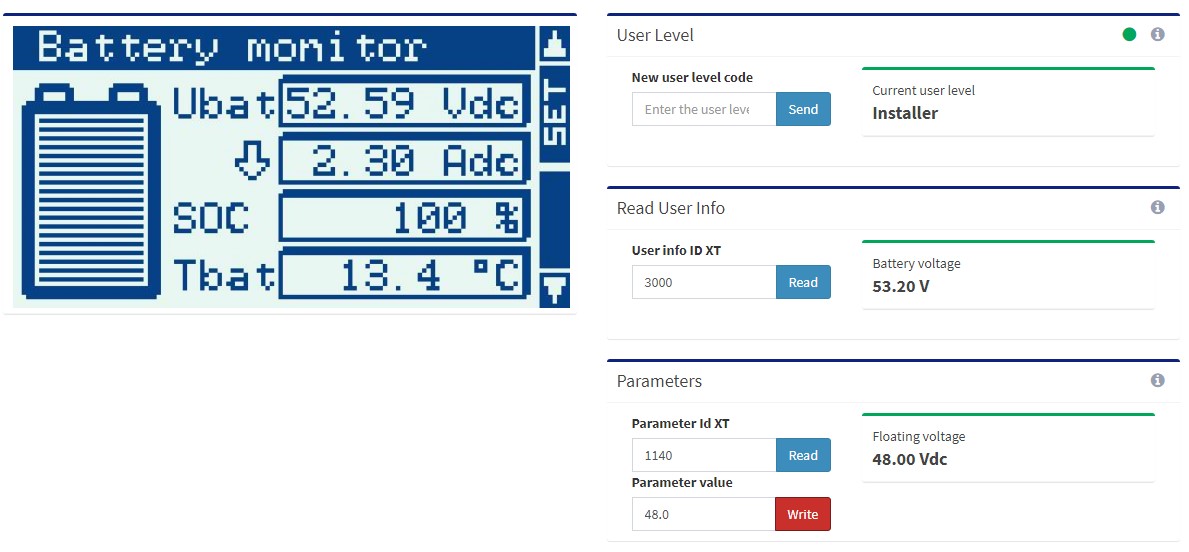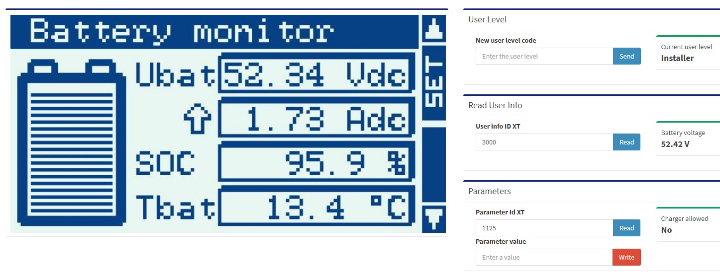 Východisko: 3xXTM(3f), 2xVT, BSP, RCC-02, XCOM-LAN, 2xXCOM-232, LiFePo4 (BMS bez CAN komunikace). Sestava oživená na bateriích, komunikace CAN kabely funkční, připojeno na portál - GUID vygenerovaný a funkční. Nastavená úroveň Installer. Firmware na všech komponentech updatované.