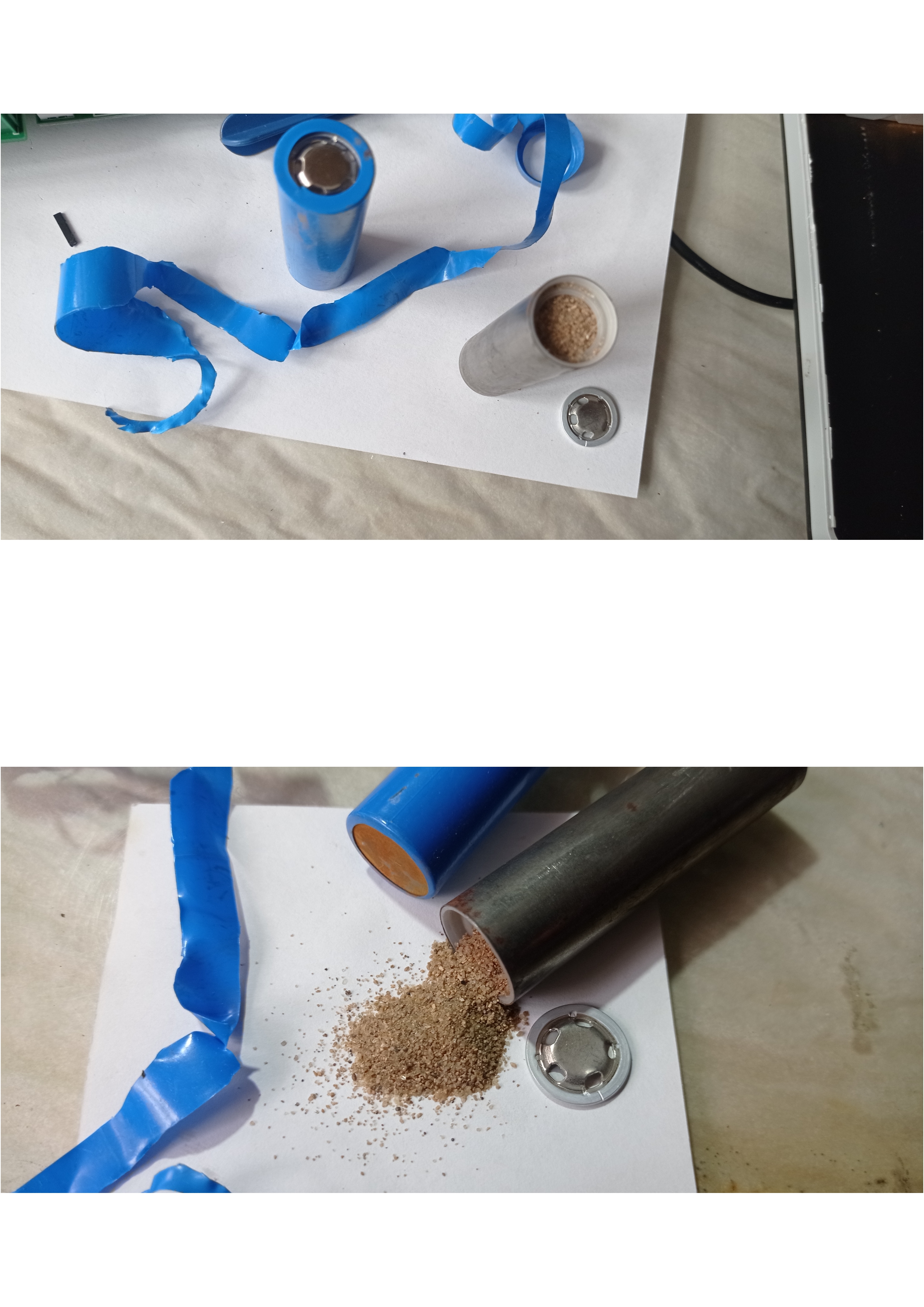 Powerbanka přišla úplně vybitá. Nabíjení šlo jen proudem 0.8 A, tak jsem předpokládal, že pro 30 000 mAh to bude nějaký den trvat. Vešlo se do ní jen 4 000 mAh. Po rozebrání vidím všechny články rezavé, na dvou nafouklý obal s elektrolytem a tři články vůbec nezapojené. Některé "články" byly naplněny pískem. Elektronika měla podporovat rychlonabíjení, ale byly tam normální čipy pro nabíjení 5V/2.1A. Prodejci jsem dal dva dny na reakci - přečetl si to, ale nereagoval.