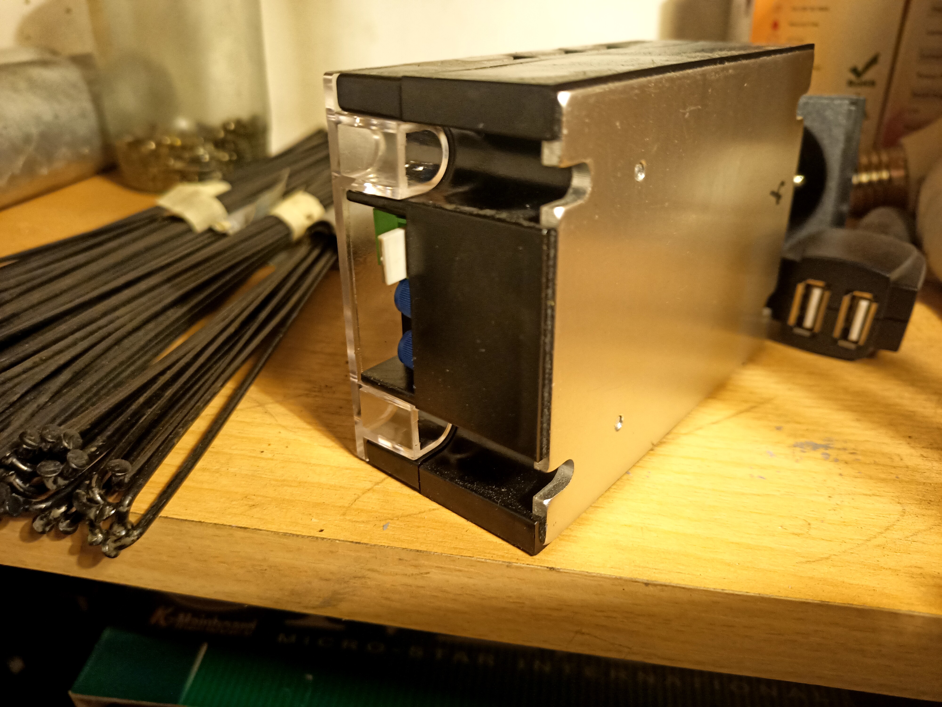 V pátek jsem si přines hromadu součástek na pět kybosových vytěžovačů a včera mě popadl amok s pájkou,tak jsem je večer sesmolil a až na jeden naběhly všechny na první dobrou,u toho pátého studeňák na výstupní svorkovnici,co povolila při šroubování,trocha pájky a je to.Jeden šel do šuplíku pro strejčka příhodu a zbylých šest(dva jsem už měl v provozu) jsem nasázel na přeplněnou FVE desku