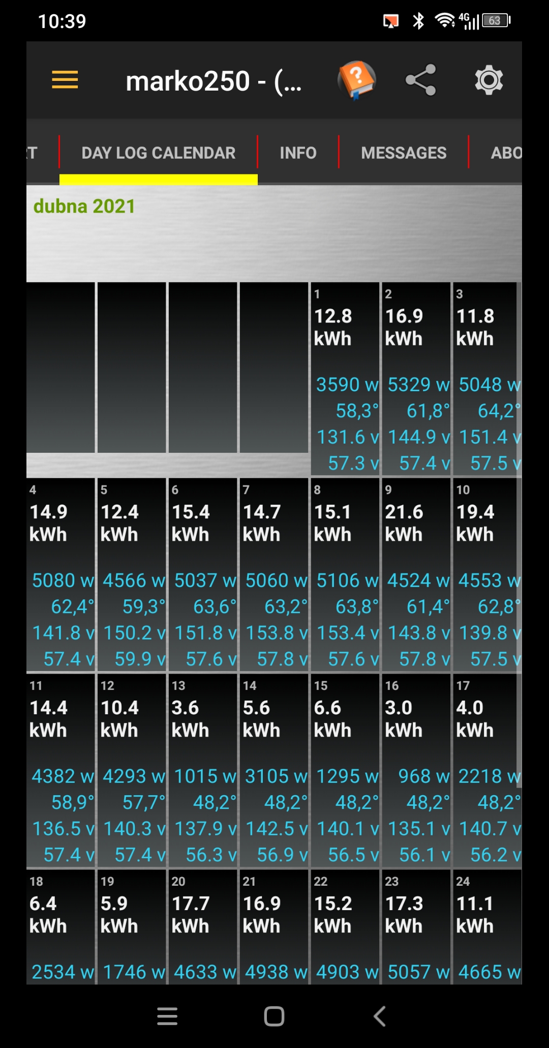 Po dubnu je za měničem v domě čistých 23.722 MWh, 662kWh spotřebováno tedy v dubnu. Panely na střeše opět dávaly svá maxima přez 5300W a pokles se opět neprojevuje.