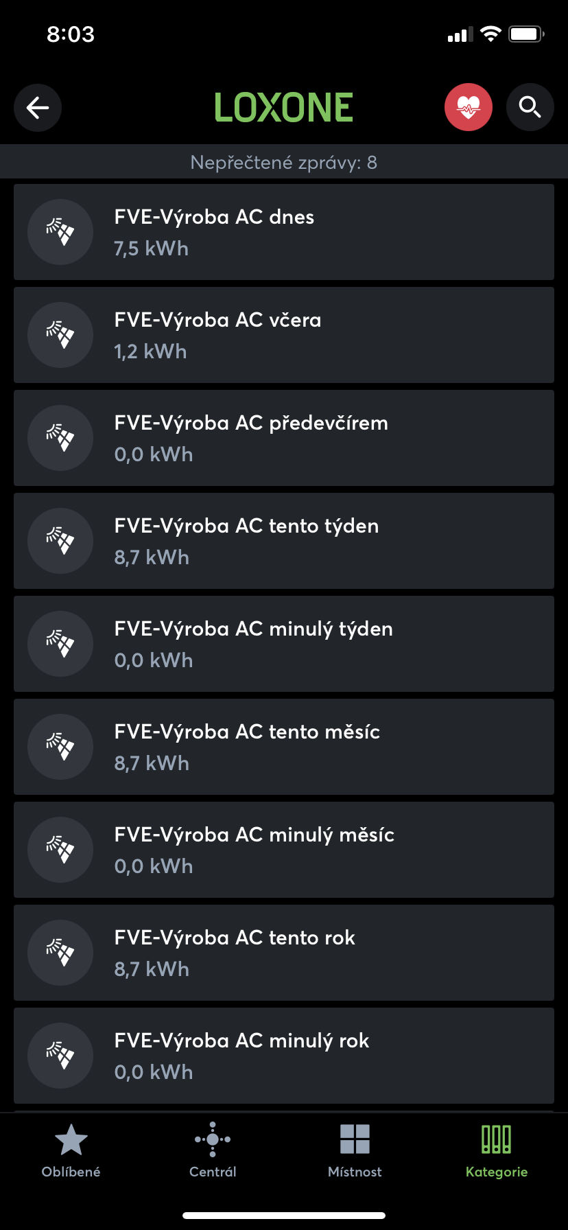 - Výkon panelů [Wp]: 8kWp