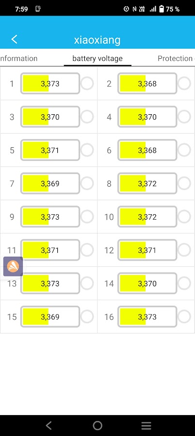 BMSka mi vypla baterku. Nemám (zatím) monitoring, tak nemám žádný vhodný log. Ale dnes jsem to nahodil a při ODBĚRU z baterek (1kW / 20A) mi roste napětí na článku č.8. Ale všechny šrouby jsou utažený. Bohužel než jsem to stihnul oměřit multimetrem, kde se to bere, tak mi to BMSka shodila. Hádám dobře, že tam někde bude přechodový odpor, že? Na screenshotech je baterka v klidu a s odběrem pro porovnání.