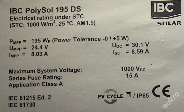 Zrovna jsem si přivezl dva panely IBC Solar PolySol 195DS. Potřeboval bych poradit, jak je správně zapojit na 12V systém (bohužel aku ještě nemám). Potom budu velice rád za rady ohledně regulátoru a co hlavně, potřebuji poradit s upevněním. Panely budou na zastřešení terasy, pod nima dutinkovej polykarbonát na dřevěný kostře. Konstrukce v pohodě vše unese, panely mají díry pouze zespodu, tak kdyby měl někdo nějakej typ na snadné a levné připevnění.