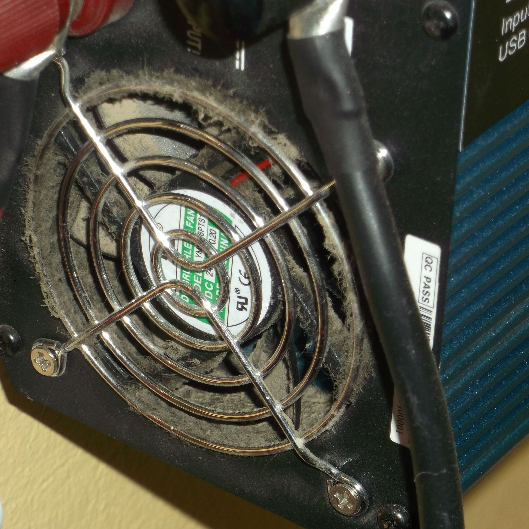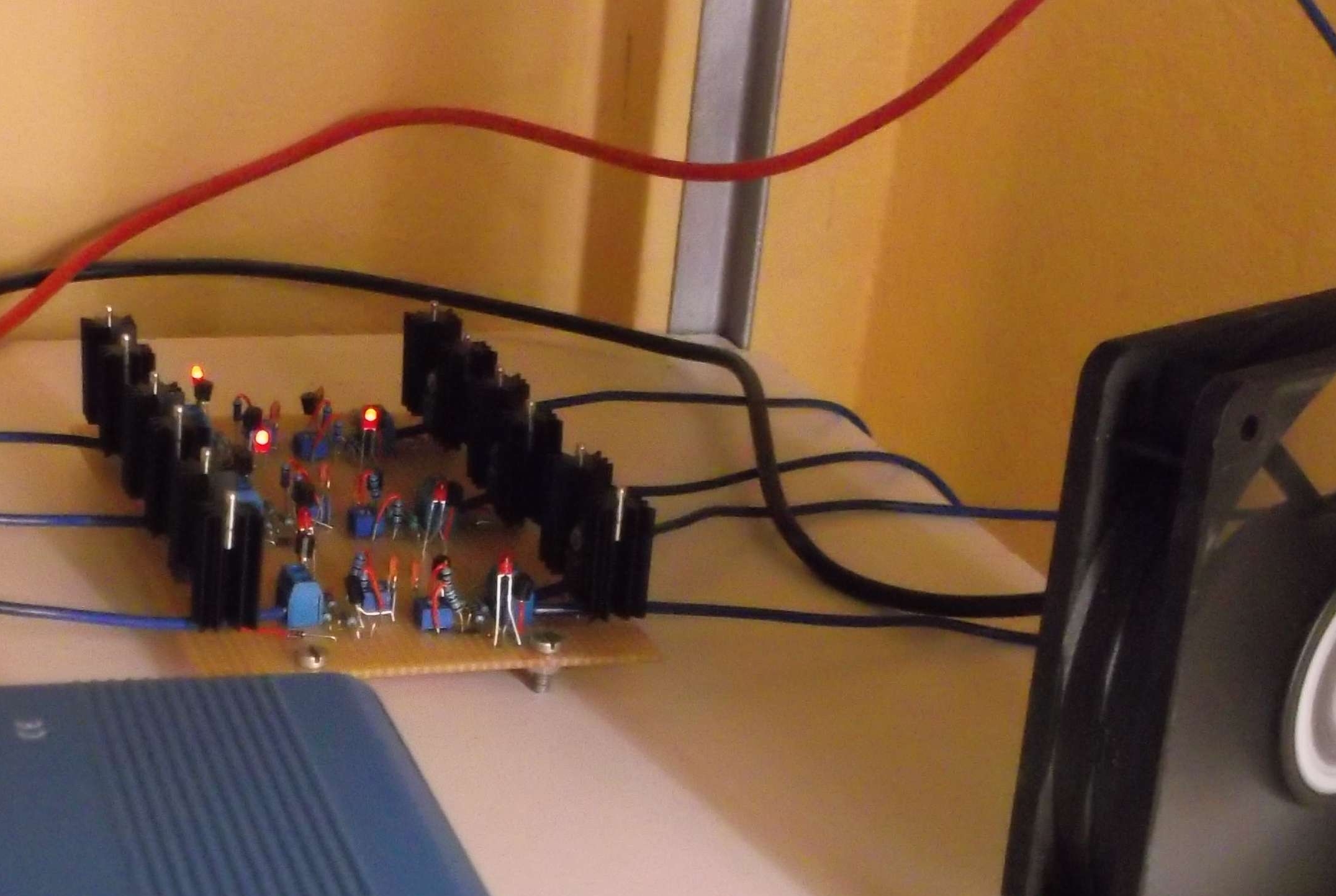 Od priateľa na fóre mám namiesto pôvodných 2ks 65 Ah (gel) 6 dvojčlánkov Fiamm 200 Ah (AGM) zapojených v sérii, teda znova 24V. Pretože nie sú celkom rovnaké a niektoré už niečo pamätajú - najstaršie z nich sú z roku 2003, doplnil som ich balancerom podľa p. Zajíca. Balancery fungujú na skúšobnej letovacej doske a chladené sú zatiaľ voľne stojacim vetrákom, ktorý bezpečne chladí výkonové tranzistory. Vytvoril som vrabčie hniezdo - profíci nech sú zhovievaví: Ako zapojenie funguje, môžeme vidieť na grafe z loggera ( na časovej osi treba odčítať 2 hodiny ): Logger na 6. článku zhadzuje občas napätie na nulu a zneprehľadňuje to graf, preto zobrazím v detaile fázu absorpcie len pre ostatných 5 článkov: So zapojením som maximálne spokojný, napätie na článkoch je orezané na hodnotu cca 4,74 V, starí páni si zaslúžia trochu "vatičky". Cieľovo chcem týmto vetrákom chladiť ešte SSR na reguláciu záťaže, ktorú pripravujem a nahradí terajšie časté cvakanie stykačov - viď časť grafu za absorpciou. Interval záznamov hodnôt napätí je 10 sekúnd.