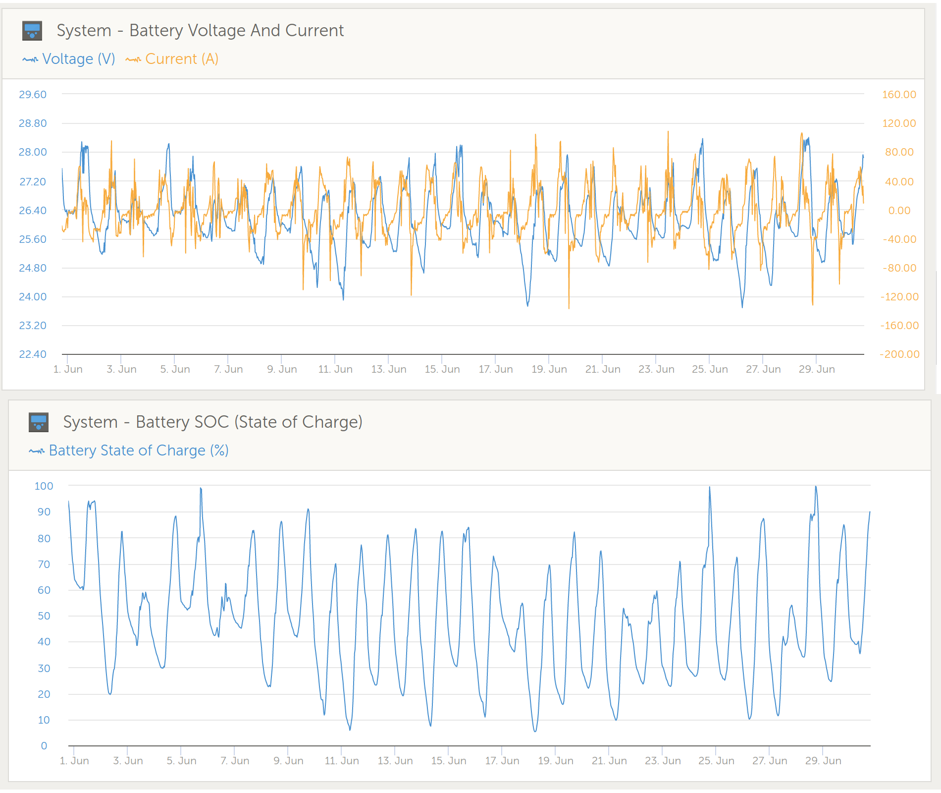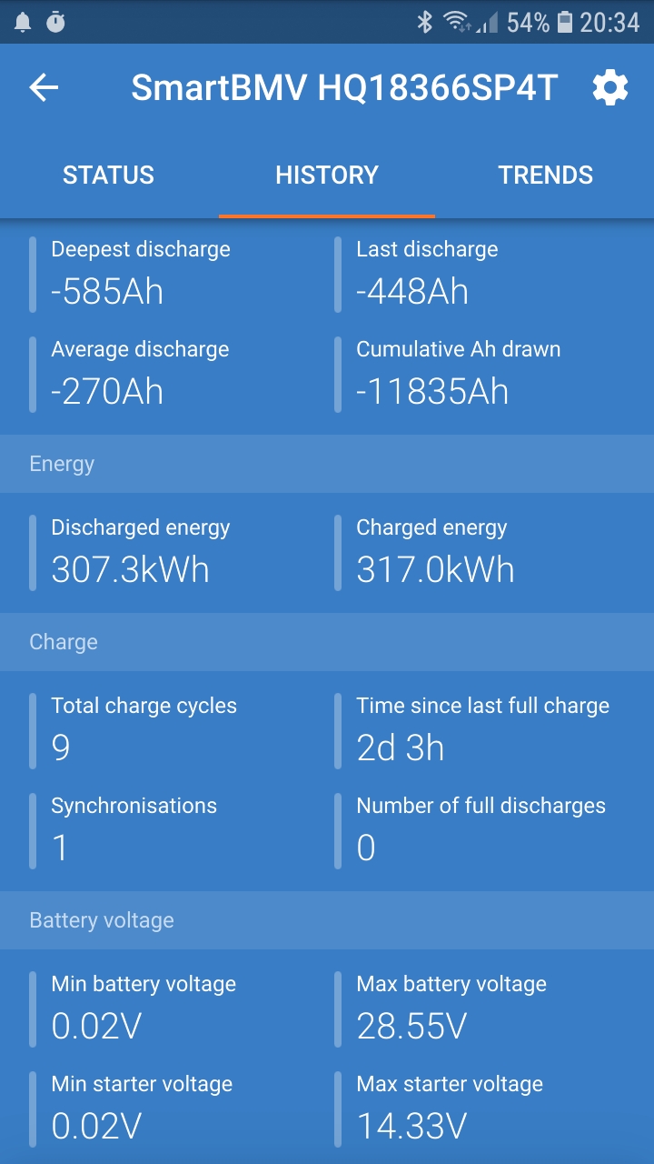 Tiež je tam cez VE.Direct napojený BMV 712, kde je napojené čidlo napatia