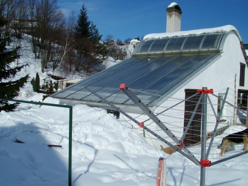 V jarním období je spotřeba minimální. To jsou ty označené malé schodky (sprchování), zbytek skončí ve ztrátách. Určitě by se tomu dalo pomoci zlepšením izolace - narovnala by se ta sestupná část křivky teploty. Vzhledem k umístění AN je zimní provoz značně rizikový (nevytápěný objekt promrzá). Původní záměr byl pouze pro letní provoz (viz elevační úhel absorbérů) a ohřev bazénové vody. Ale v létě, když byla vnoučata ještě malá, pracovala fototermika na plný výkon a vypouštělo se i přes půl AN za den.Ronn píše:Pěkně, pěkně. Kolik z toho odebírá provozovatel?