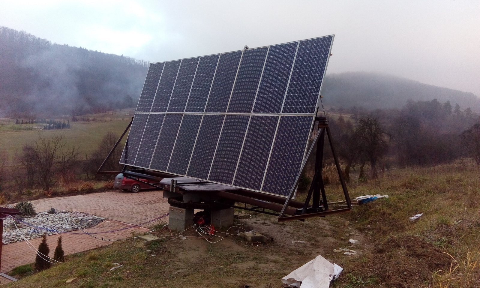 Jestli dobře počítám, máš tam už 40 panelů? To je tedy výkon cca 10kW. Něco podobnýho plánuju na střechu domu, jakej to dává výkon když je hnusně? Díky za info i případné sdělení zkušeností