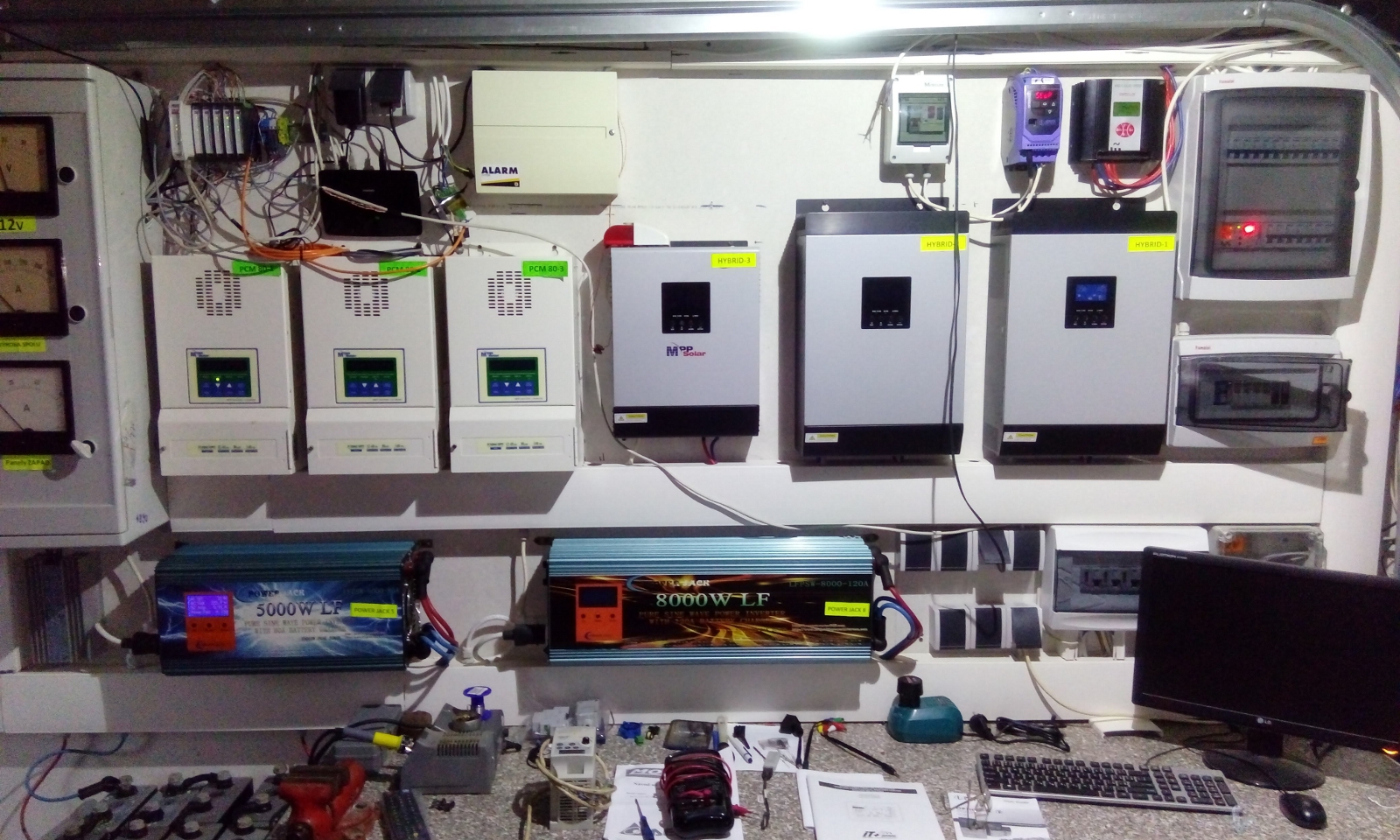 testovacia prevadzka - ostrov amorf 99,6kWp , 3F DC/AC Sinegry 12x5kW, SMA 6x 17kW, Pb 16000Ah@48V...