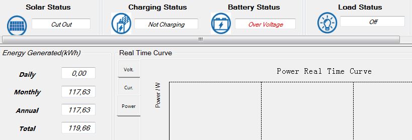 Po vypnutí/zapnutí regulátoru se nastavily menší statistiky výroby kWh a denní statistika zůstala samo nulová.