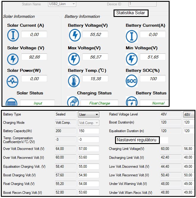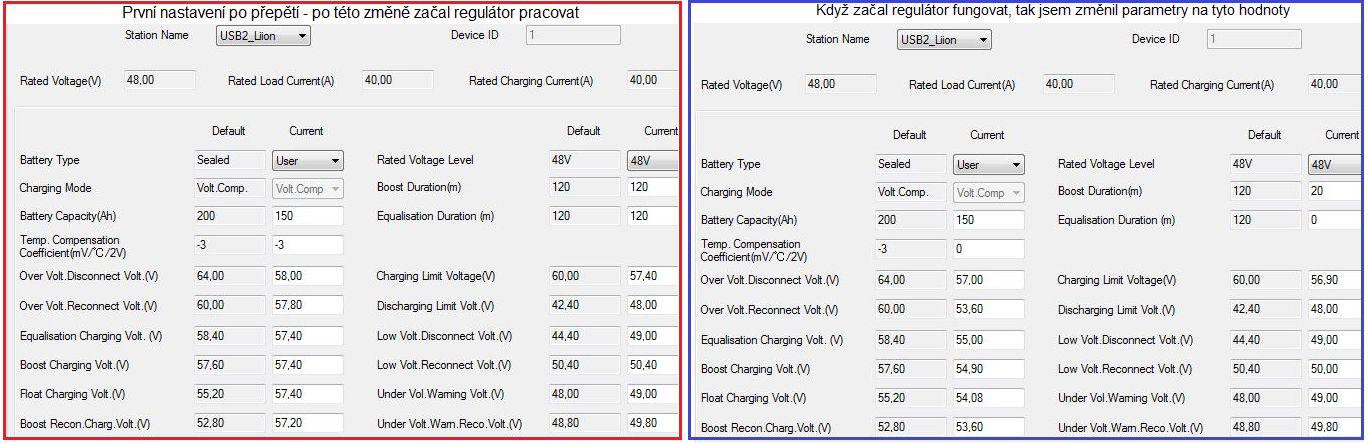 S dovolením jsem našel "podobné nastavení" regulátoru Epsolar + akku 48V - Li-ion 14S zde na foru - ale jsou tam dost velké rozdíly, že teď nevím zda to mám O.K.