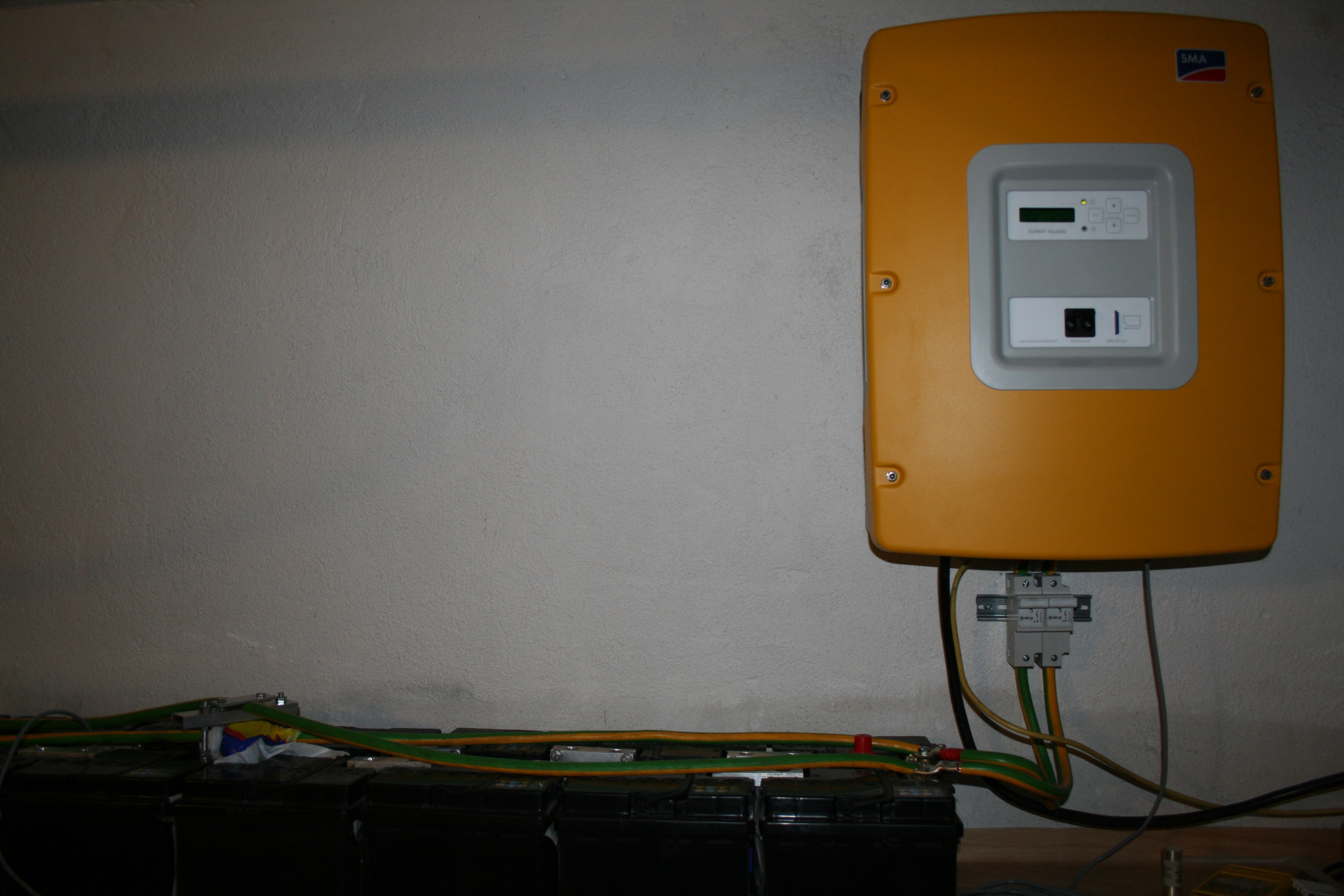 Jsou to obyč. autobaterie. Fotka je stara nyní je ješte na zemi 8x 230 Ah, a těch malích je 24 ks. Budu rád když jestě poslouží rok či dva a pak nějaká výměna nejspíš Hoppecke. Je to takový pokus stěma autobateriema uvidím co vydrží.