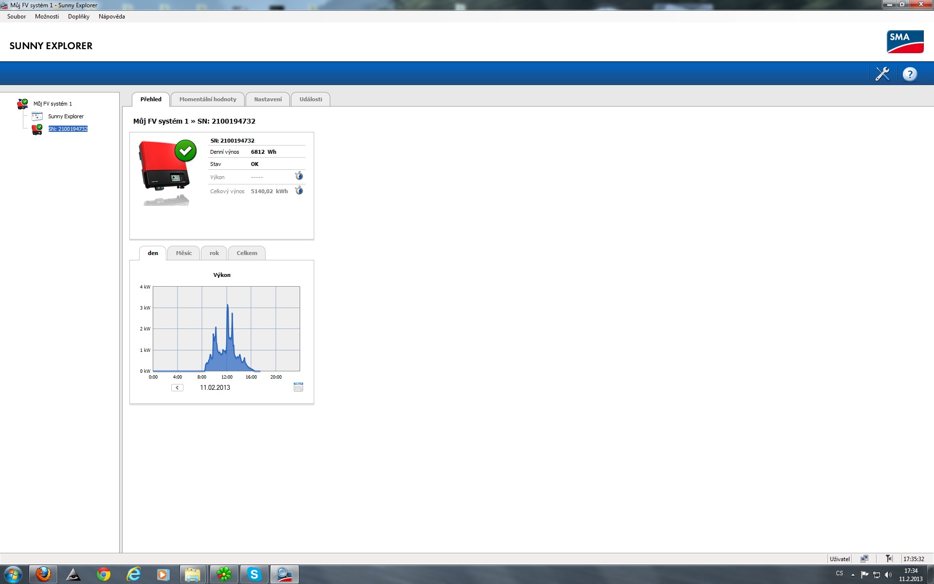 Tato sestava funguje už 1 rok a nejaky ten měsíc. Střídač do dnešního dne vyrobil 5140 kw jak je vidět na přiloženém obrázku.