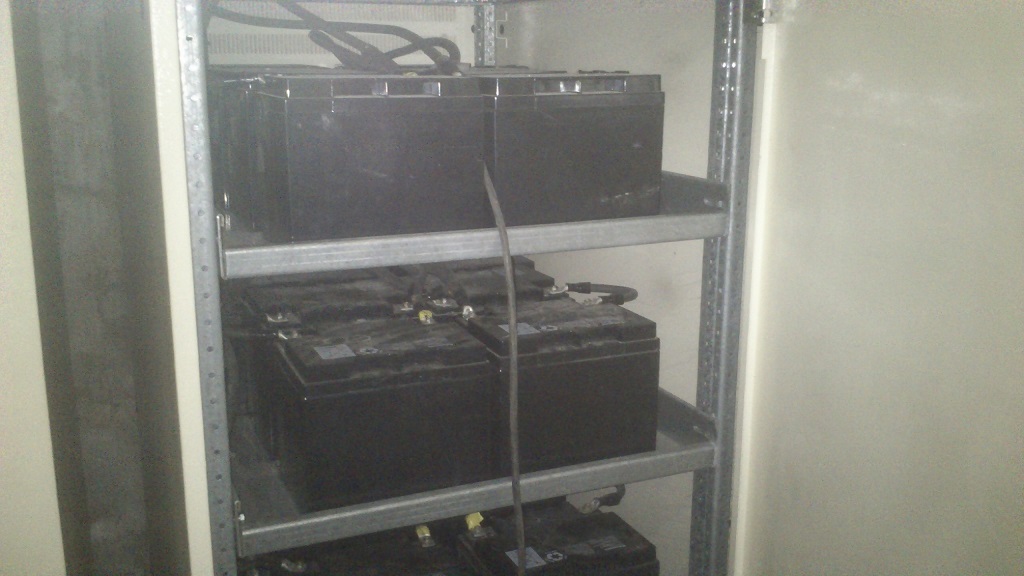 Součástí UPS bylo 32x gel 12V 40Ah. Není to sice nic moc ,ale funguje to a připadá mi, že bateriím slabé cyklování relativně malým proudem spíš vyhovuje a zdají se být zatím v lepší kondici než v době , kdy byly přivezeny. Ještě vůbec netuším čím je nahradím až umřou. Mám v jednání nějaké NiCd z ČD , ale tam vzhledem k tomu, že používají napětí 24V žádné slabé nemají . Navíc jsem spočítal, že bych potřeboval zhruba 350 ks stejných článků, což je úkol hodně nelehký a je to zkrátka masakr. Navíc NiCd baterie nenají rády nabíjení příliš malým proudem vůči kapacitě, takže vůbec netuším jak by to fungovalo.
