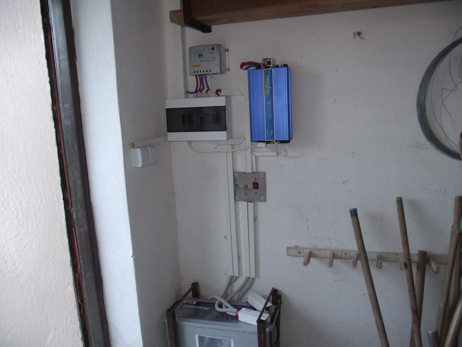Ten vypínač vľavo je asi odpojovač barérie od regulátora; ak áno, bolo by asi vhodné zabezpečiť ho proti odpojeniu pri panike alebo z neznalosti. Napr. nápisom "nevypínať, ak je pripojený FV panel"... Škoda by bola odpísať regulátor.
