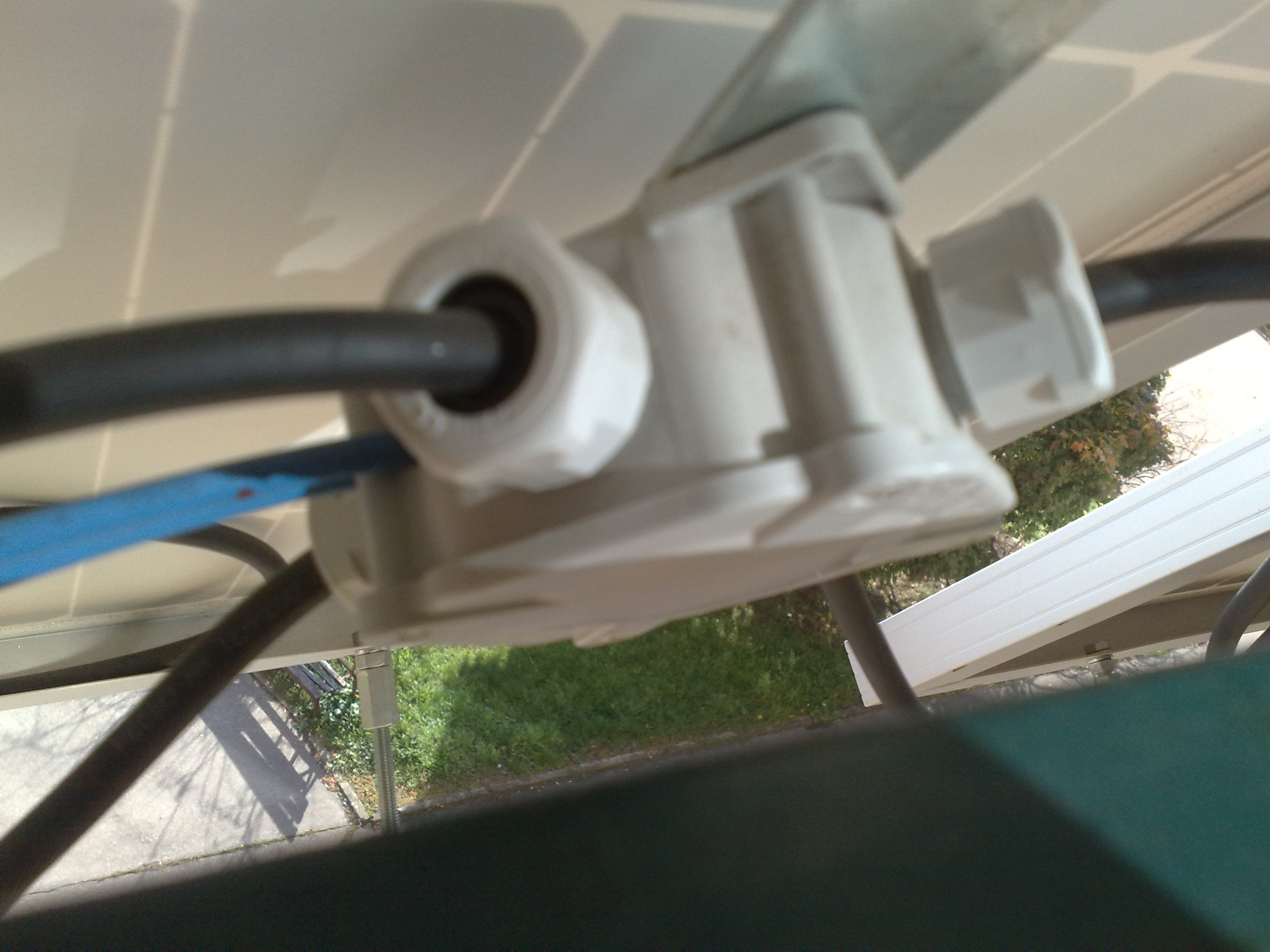 Panely mám už takto nějaký ten rok umístěny, ale zatím se mi nestalo, že by vítr foukal ze závětrné strany domu a v takových nárazech. Zkrátka: v neděli dopoledne tu byl „takové fukéř“, že podfukoval panely, ty lítaly na pantech jak živé a závitové tyče mlátily do drátoskla.