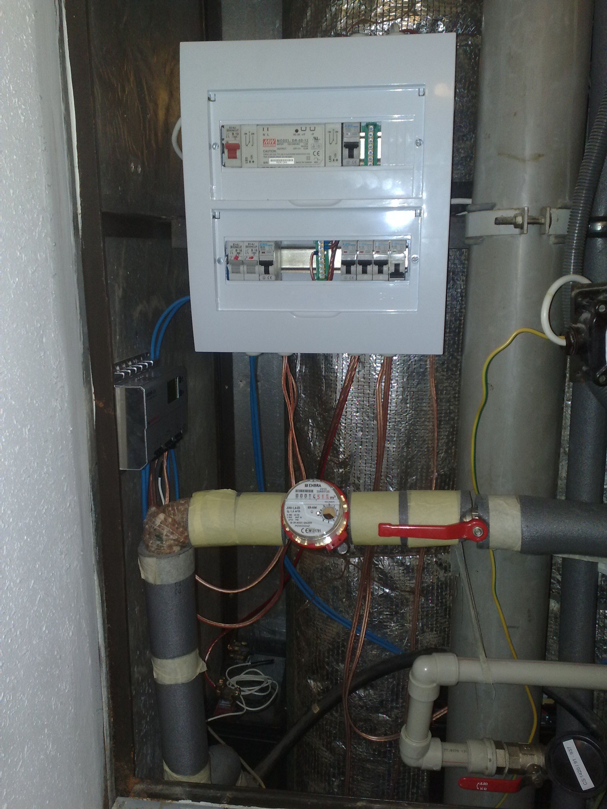 Srdce systému (rozvaděč, regulátor, aku) je nainstalováno v běžných panelákových stoupačkách na záchodě. Výhoda je, že se na toto místo dobře tahají kabely, je tam 220V pro zálohu, a je dobře odvětrané díky centrálnímu větrání. Nevýhoda je, že už tam není moc místa na nějaká rozšiřování a taky se děsím toho, kdyby to tam někdo vytopil co by se pak dělo...