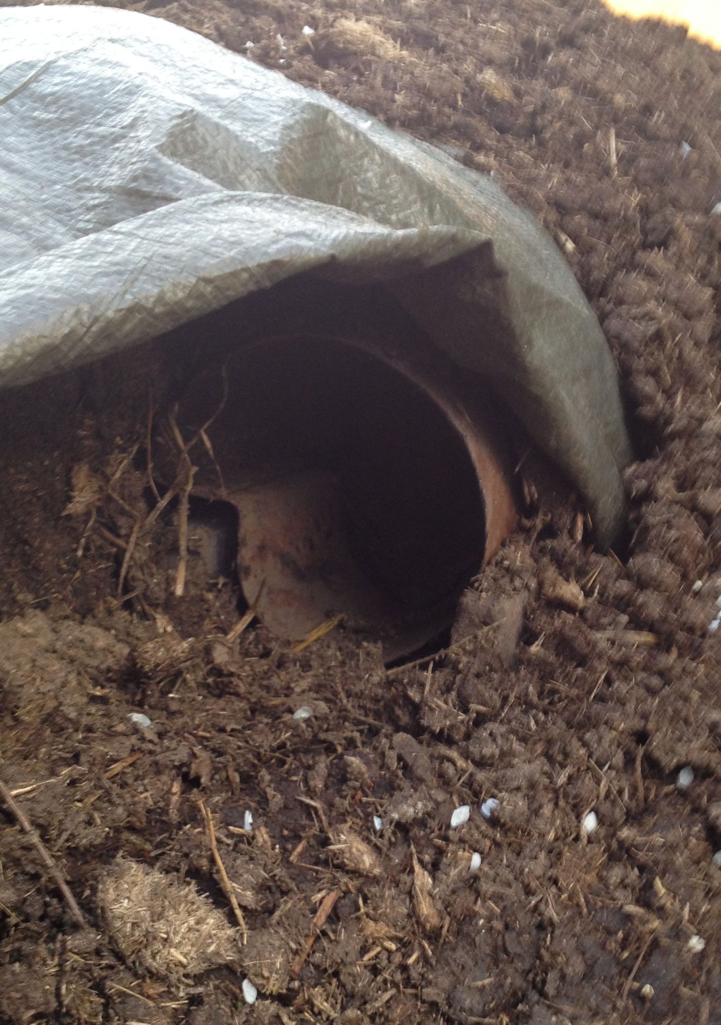 Elektrocentrála je chlazená vzduchem. Zkoušel jsem chlazeni vodou tím, že jsem ji obalil hadicí a oběhovým čerpadlem to honil přes nádobu. Chladící efekt byl dobrý, ale centrála tolik netopí takže jsem to zasejc zrušil. Centrálu jsem zakopal tak, že jsem z palet postavil základy, které jsem zasypal hlínou smíchanou s koňským hnojem. Hnůj obsahuje trochu močoviny, která působí jako pojivo... Celá směs pak ztvrdne podobně jako beton. Chlazení je přetlakové zajišťuje ho silný ventilátor v centrále a chlazení probíhá ve dvou komorách. Do první komory je vzduch nasáván, poté prochází centrálou ohřeje se a vychází druhou komorou výduchy ven. Viz foto.