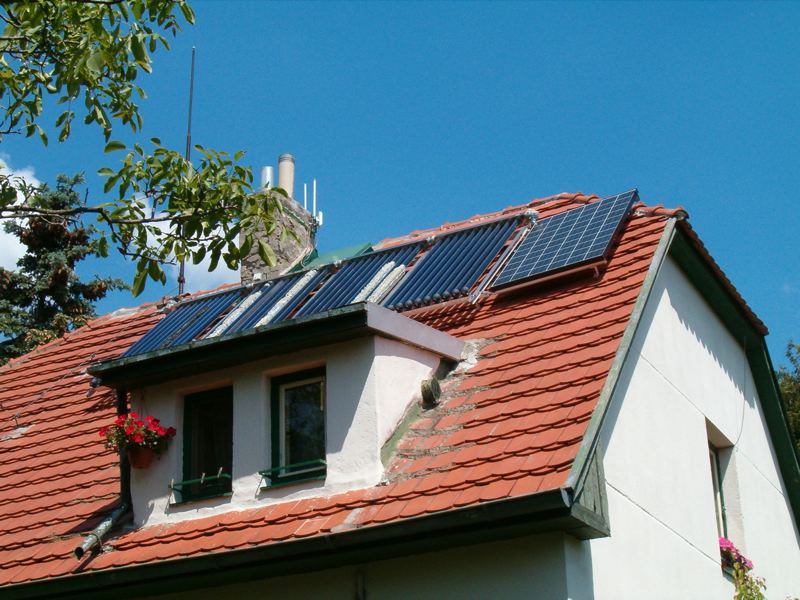 Nejdřív šlo jen o vodu, to je taková pěkná velká hračka... pak se přidaly 2 FV panely, jeden vedle vody směr západ ...