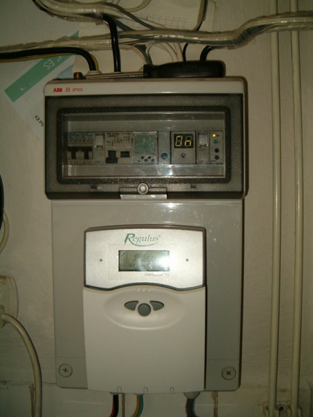 Regulátor na vodu je předělaný na 12V z FV oběžná čerpadla a ventyly jsou na tom 300W sinus měniči,