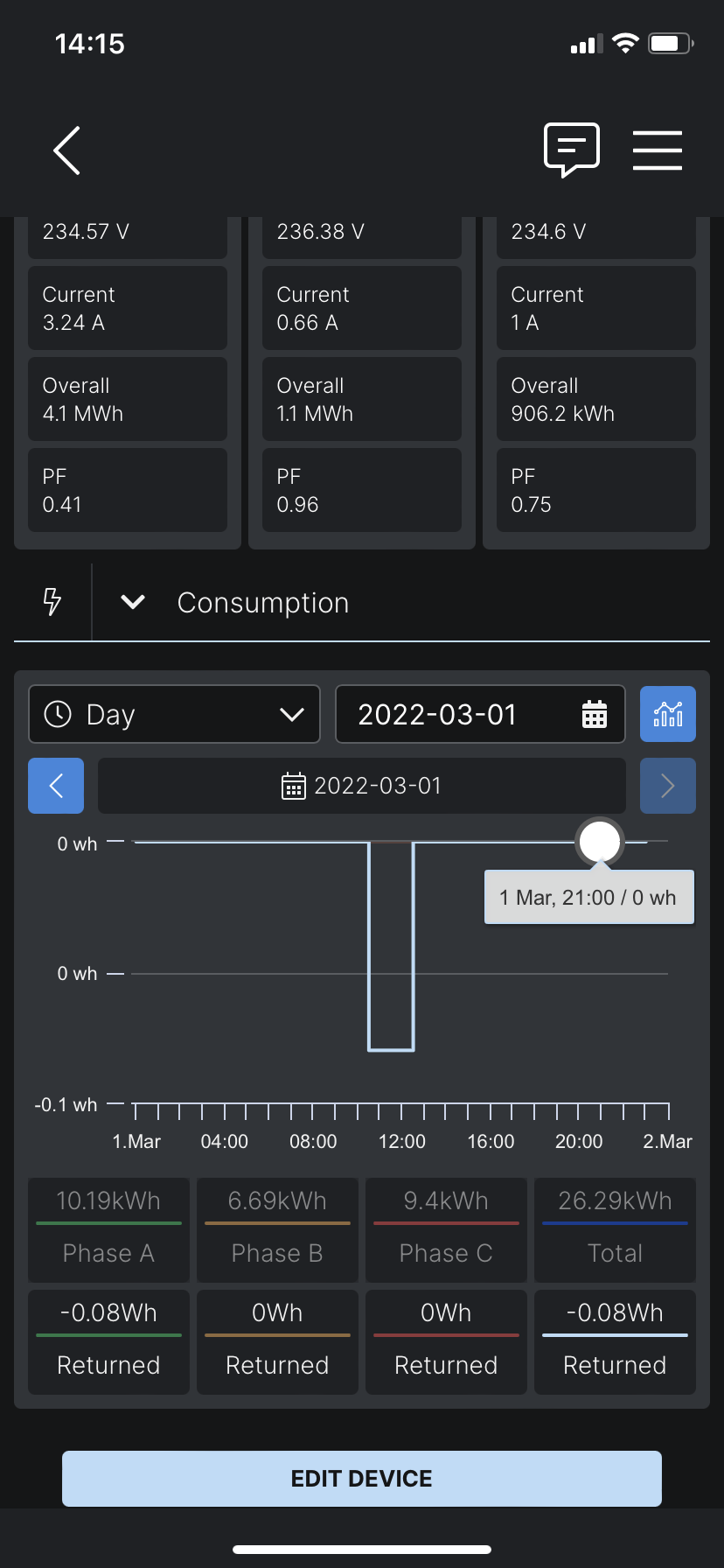 Schválně jsem se podíval do svého shelly měření. Když jsem ho instaloval před dávnými a dávnými časy, tak jsem ještě ani neměl FVE, ale jen chtěl další čísla do HA. Vzhledem k tomu, že jsem nic tehdy nevyráběl, tak jsem také zakázal položky "returned energy", jen by překážely. Teď jsem se si je tedy povolil, čekal co naskočí a šup ho... na fázi L1 přetok a to 2.19 kWh. Tak si říkám, jestli to třeba nebude chyba měření... tak koukám na další a tam je L2 0.0 kWh, L3 0.01kWh. To tak úplně nevypadá. Victron Multiplus by zejména bez zadáni grid kódu, bez povolení grid assist, power assist neměl žádné přetoky dělat. Jen jsem si vzpomněl, že po aktualizaci FW se mu resetuje veškerá konfigurace a než jsem to zjistil, půl dne jsem ho provozoval v defaultu. Tak už mě málem omývali a dělalo se mdlo, ale tak stáhl jsem si csv data, hodil do excellu a tam je, že zhruba 95 % přetoku jsem vyrobil v březnu 2021, kdy jsem ještě ani netušil, že budu nějakou FVE řešit. Záznamy jsou v 10min intervalech s hodnotami 0.1-0.8 (medián 0.3) Wh. U hodnot větších než 0.1 jich je vždy více nenulových po sobě. Takže si myslím, že to bude chyba měření. Samozřejmě, zaručit to nejde, ale spíš že je tedy důkaz, že shelly může naměřit blbost.