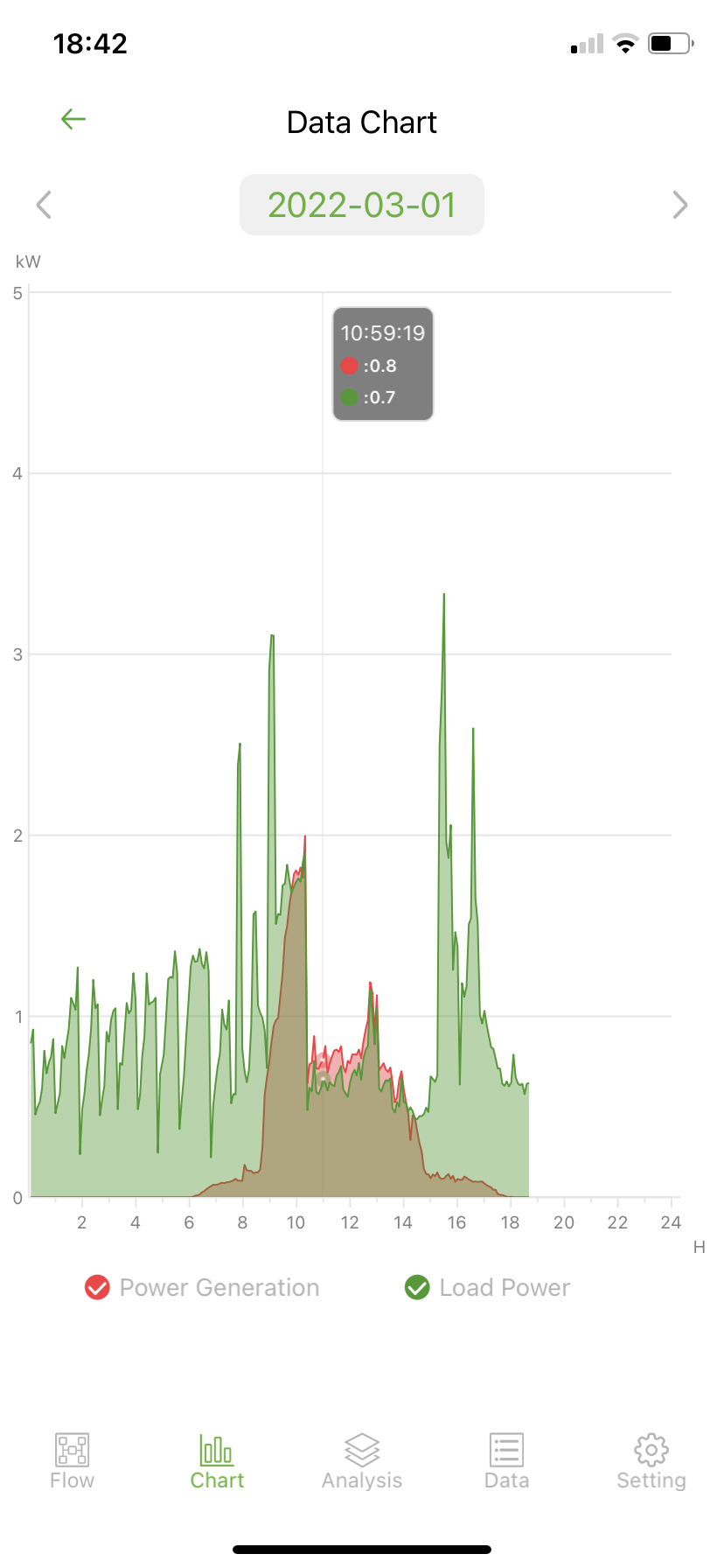 Tady přikladam graf. Dnes 11h odběr stálých cca 100w a fazi A. Obdběr v domě cca 700w z panelu jde cca 800w . Dle mě jde o nějakou chybu měření…