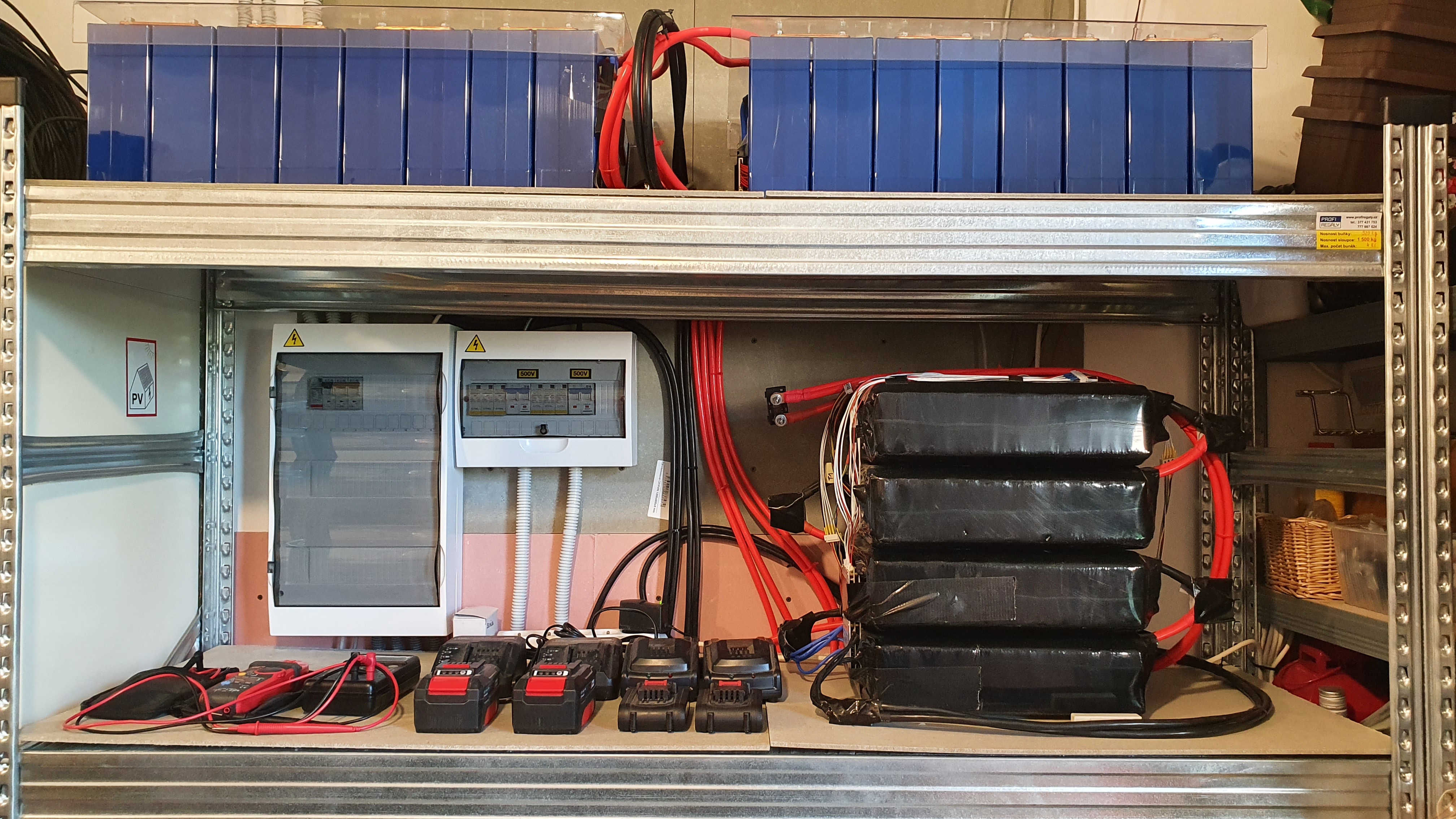 V tomto vlakne bych chtel predstavit aktualni verzi vlastni ostrovni FVE a take se podelit o zkusenosti s ruznymi komponentami a jejich opravami. Jak to uz byva, cely system je nyni uz nekolikatou generaci, kdyz je clovek hravy. Nejdrive jsem zacal experimentovat s menicem a LiFePO4 akumulatory. Sestavil si zalozni zdroj s 5 kWh baterii zalohujici jen vybranou dulezitou infrastrukturu domu (integligentni system domu, pocitace, lednice). Tato prvni baterie je poskladana z hromady cylindrickych clanku. Pak jsem system rozsiril na zalozni zdroj pro vsechny elektricke okruhy mimo vytapeni, ohrevu TUV a virivku. Pridal jsem automatizovany prepinac siti pro patricne elektricke okruhy z 3f distribucni site na 1f menice zalozniho zdroje. Dalsim krokem pak bylo experimentovani s fotovoltaickymi panely nejdrive polozenymi na zahrade. Po nejakem case doslo k rozsireni poctu fotovoltaickych panelu, pridani druheho menice a premisteni panelu do jejich soucasneho umisteni.