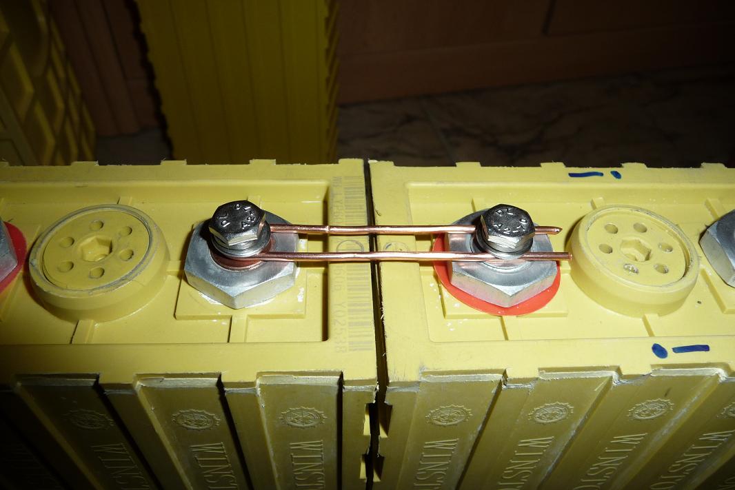 Nastříhat , ohnout do tvaru U tak , aby obluček byl pod jedním šroubem s podložkou bateriového vývodu a pod šroub s podložkou nésledujícího článku přitáhnout oba volné konce onoho U . Já toto považuji za dočasné řešení , ale již sem se setkat i s machry jež to takto měli nafurt :sm1: .