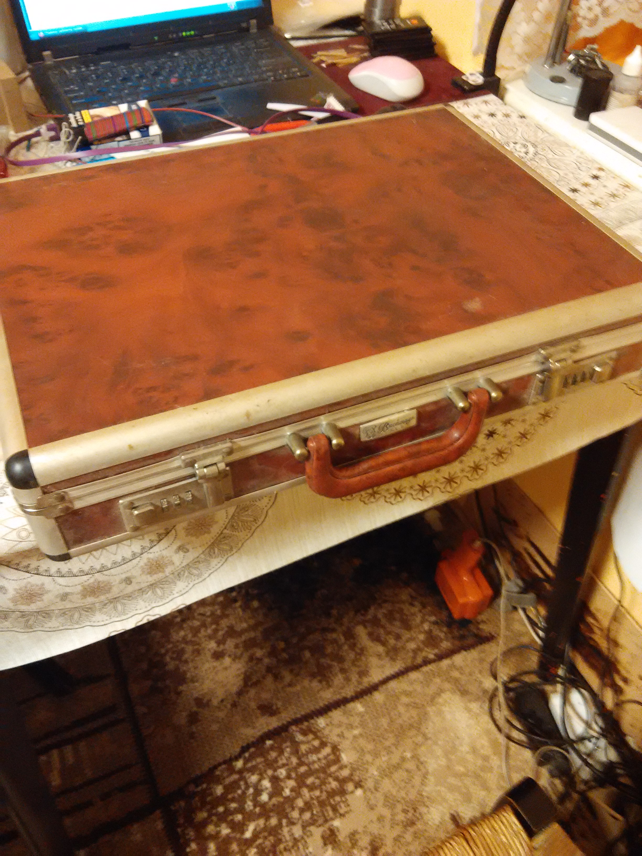 Kufr je nalezenec z kontejneru, původně asi od nějaké sady nožů. Je to popundekl, ale na tohle bohatě stačí.