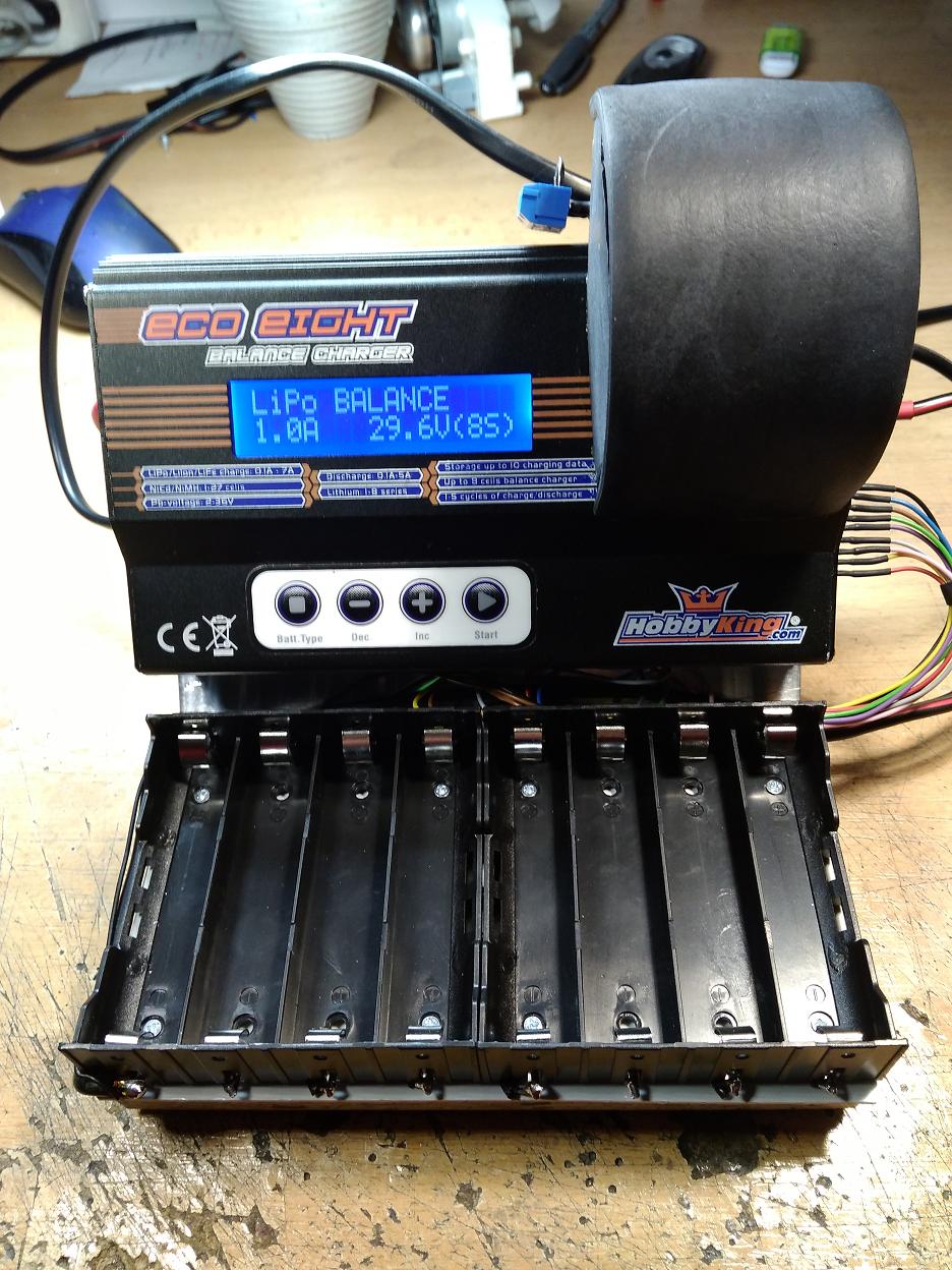 K testovani akumulatoru 18650 pouzivam upravenou 8S modelarskou nabijecku-vybijecku.