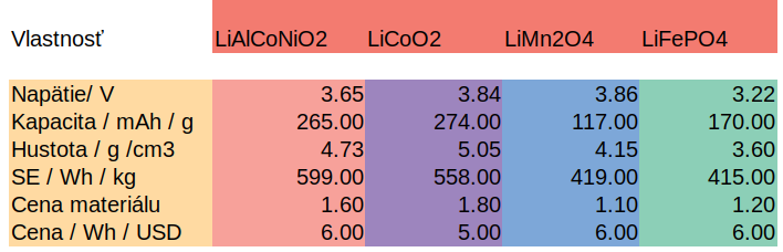 s LiFePO4 / 3.5 V /. LiFePO4 má reakčný potenciál okolo 3.5 V, má dobrú cyklickú