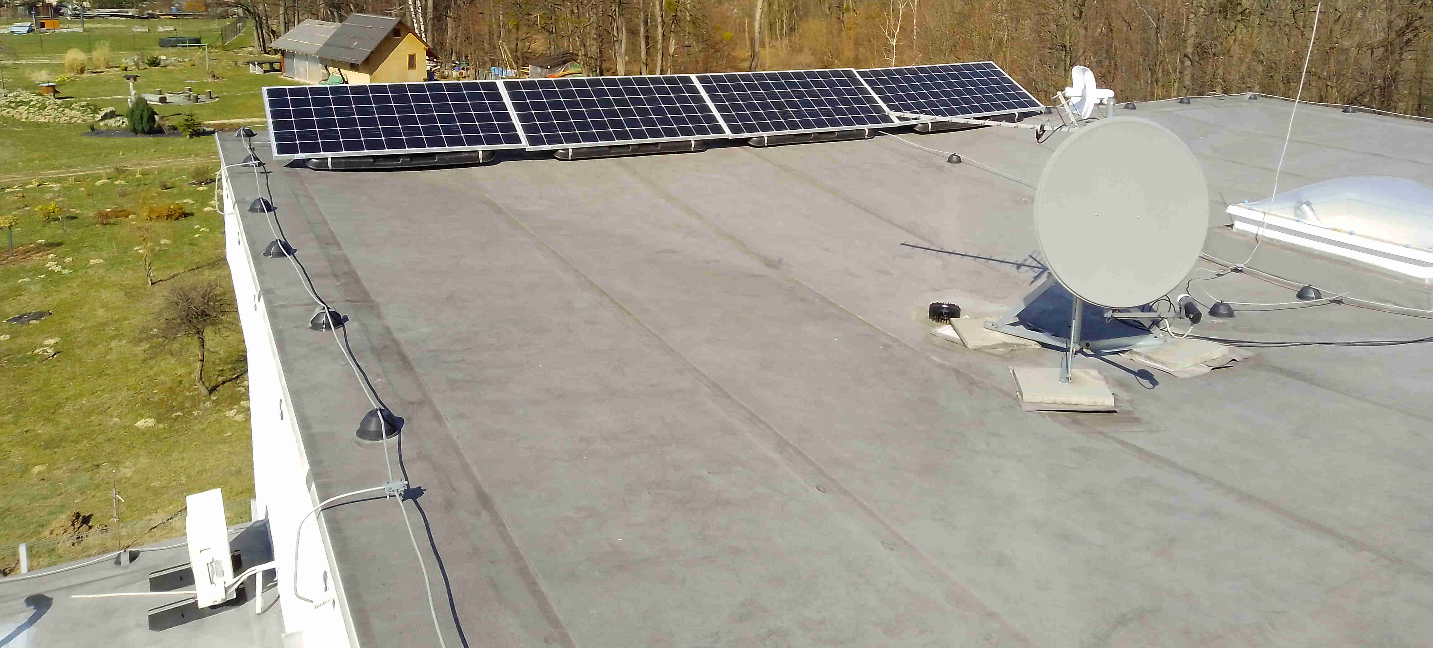 Fotky na střeše nejsou z doby kdy to bylo hotové, na fotkách ještě nejsou ani kabelové trasy a uzemnění panelů. Zákazník úpravu hromosvodu nechtěl/nezaplatil a zadarmo to dělat nebudeme. Navíc na rodinné domy není v ČR hromosvod povinný. A když jsem viděl tu nejvyšší trojnožku na antény bez uzemnění a s kabely omotanými kolem hromosvodu, tak tady to žádná úprava hromosvodu už stejně nezachrání.