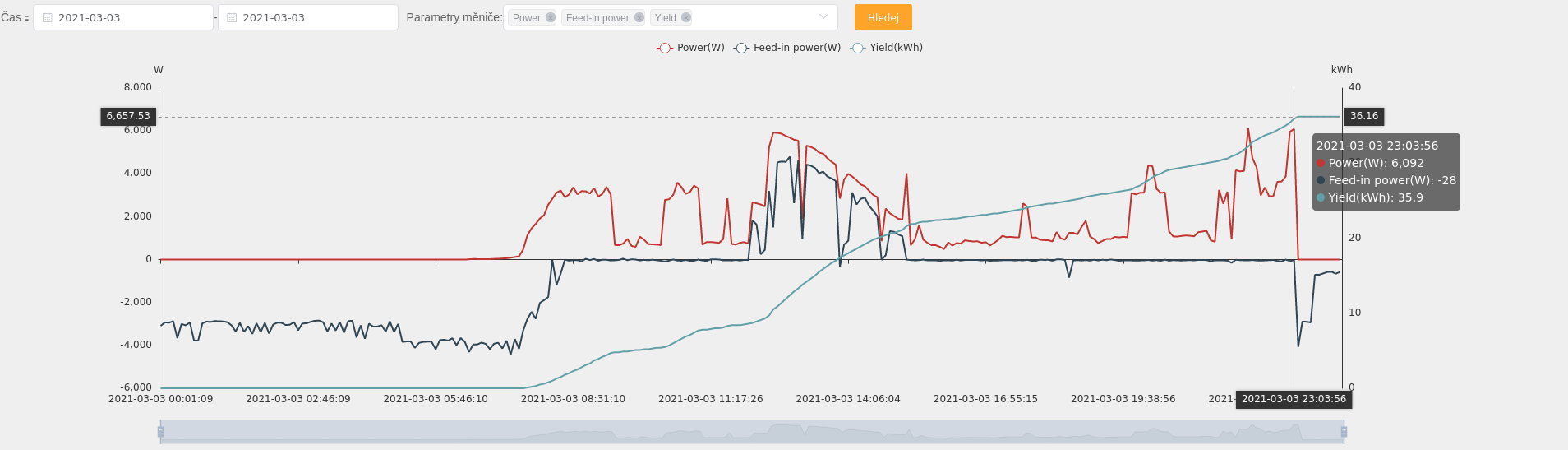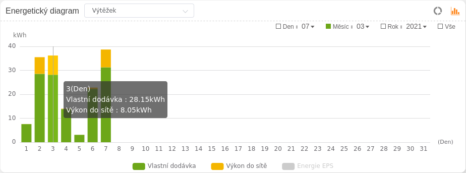 Za tento den 3.3.2021 elektrárna vyrobila 36kWh.