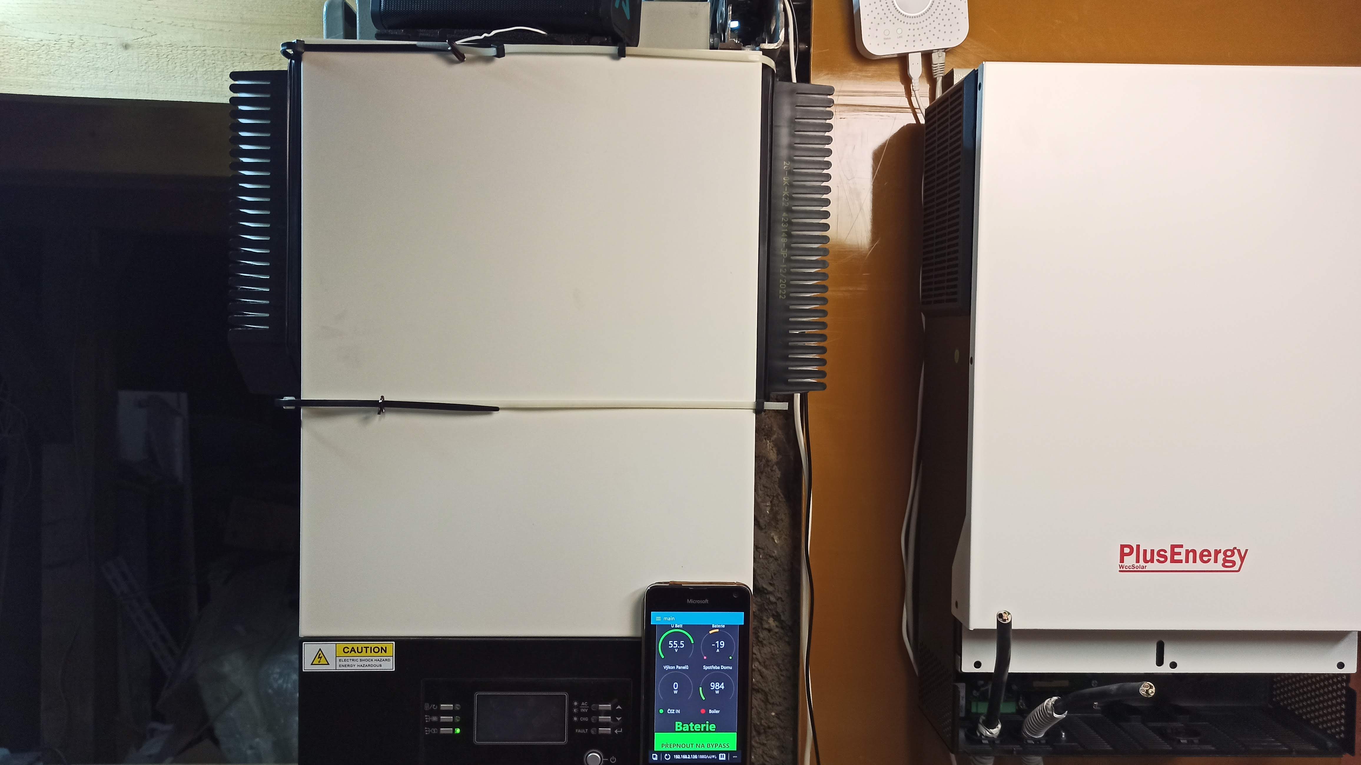 Phoenix 5 kVA + MP 24/5000 (můj byt + wifi/kamery/atd. + máti byt)