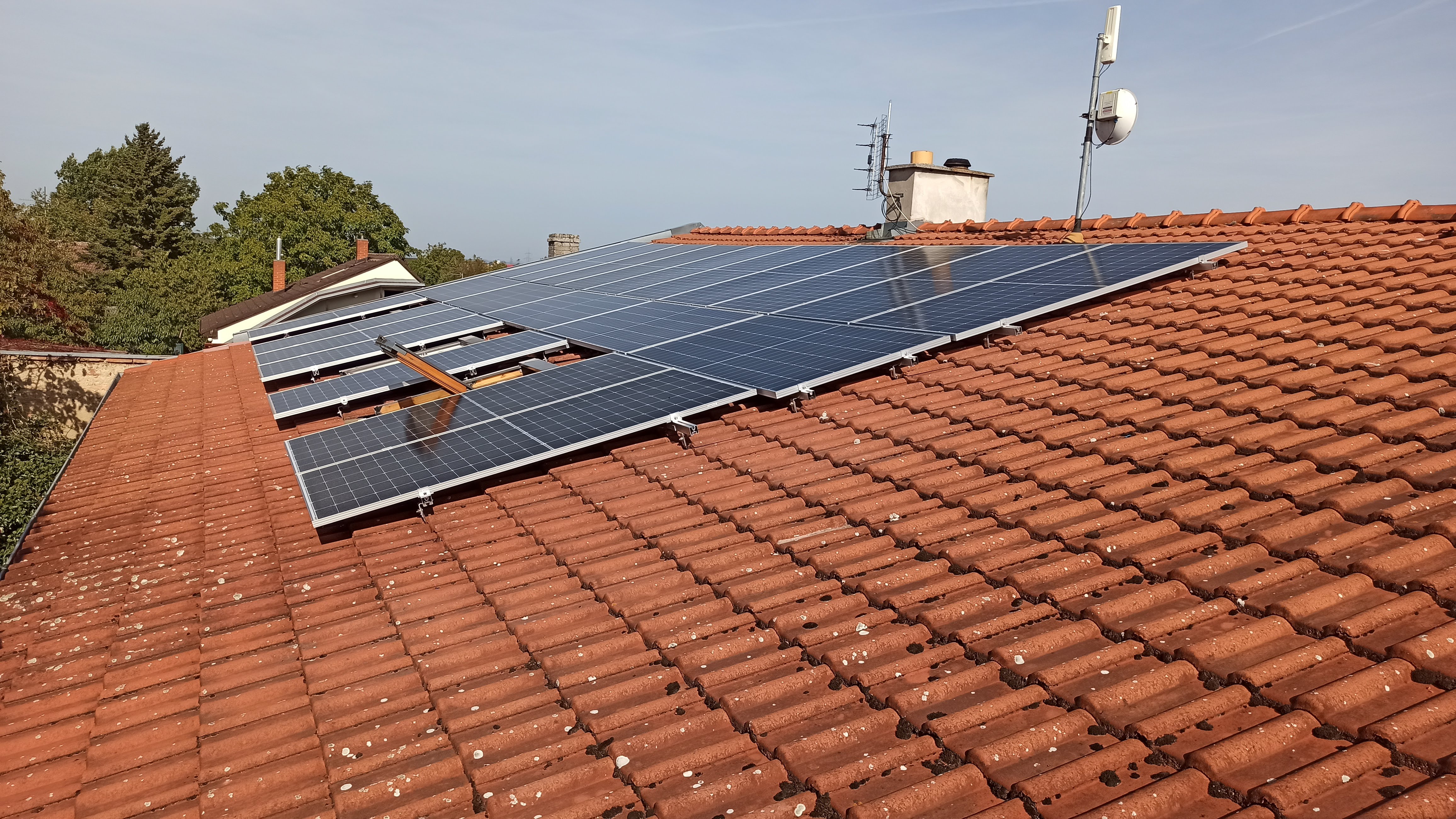 13,38 kWp: 9850 Wp Jih, 2040 Wp Východ, 1490 Wp Západ