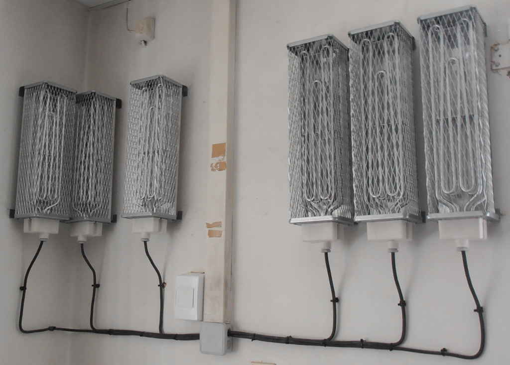 Ty topná tělesa na stěně jsou jen pojistka, když je akumulační nádrž nahřátá, tak na ně termostat přepne přebytečnou energii.