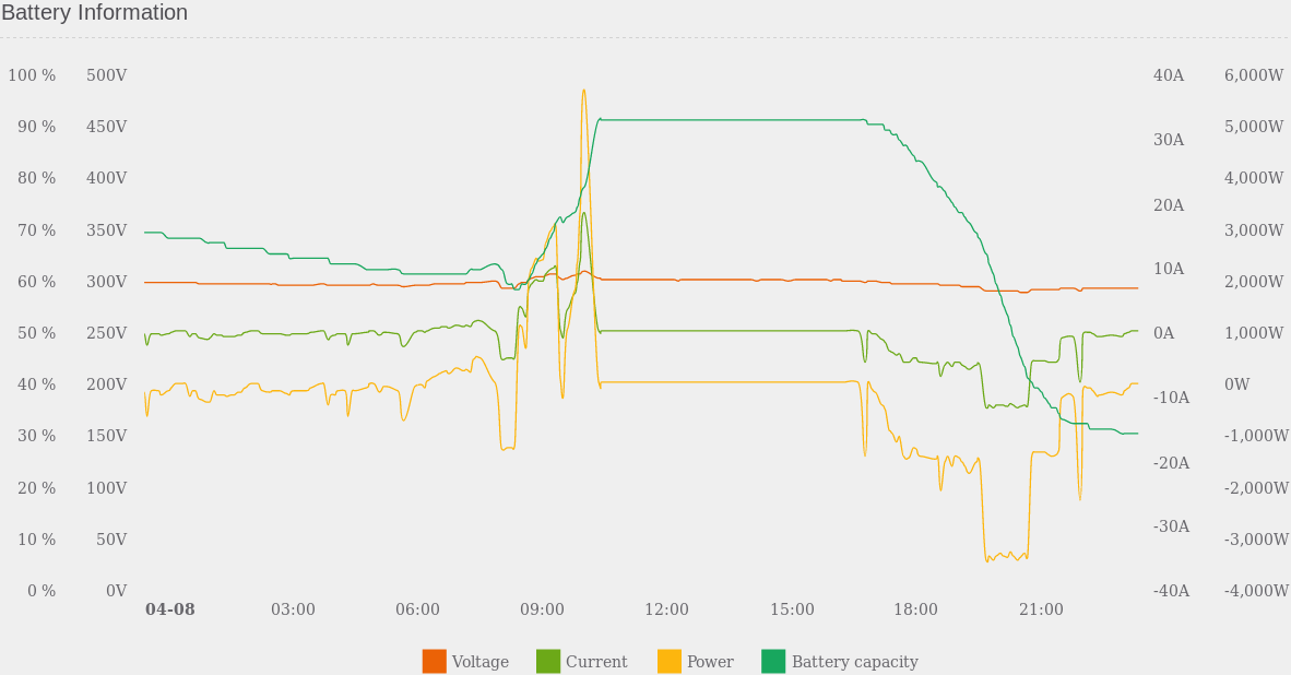 Předchozí a tuto noc to funguje dobře, co jde ze sítě jde přímo do spotřeby i baterku to úplně odpojí a ukazuje 0V.