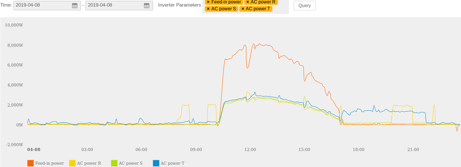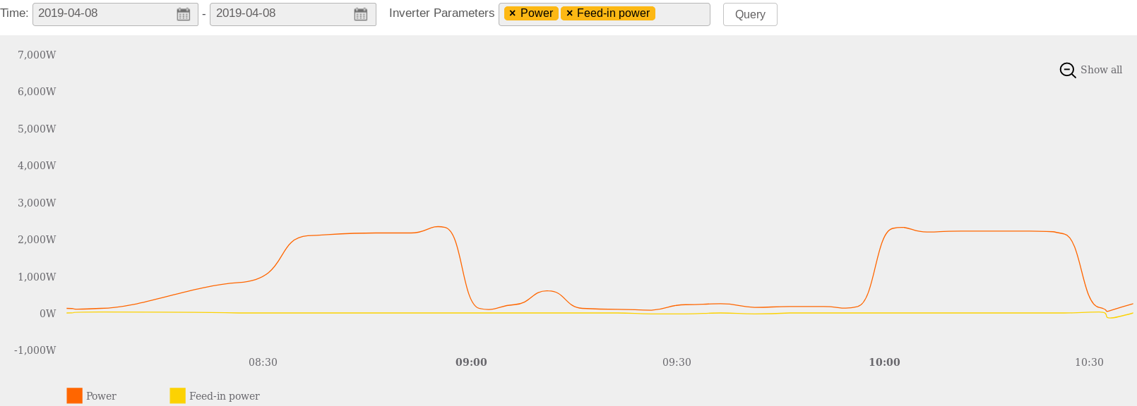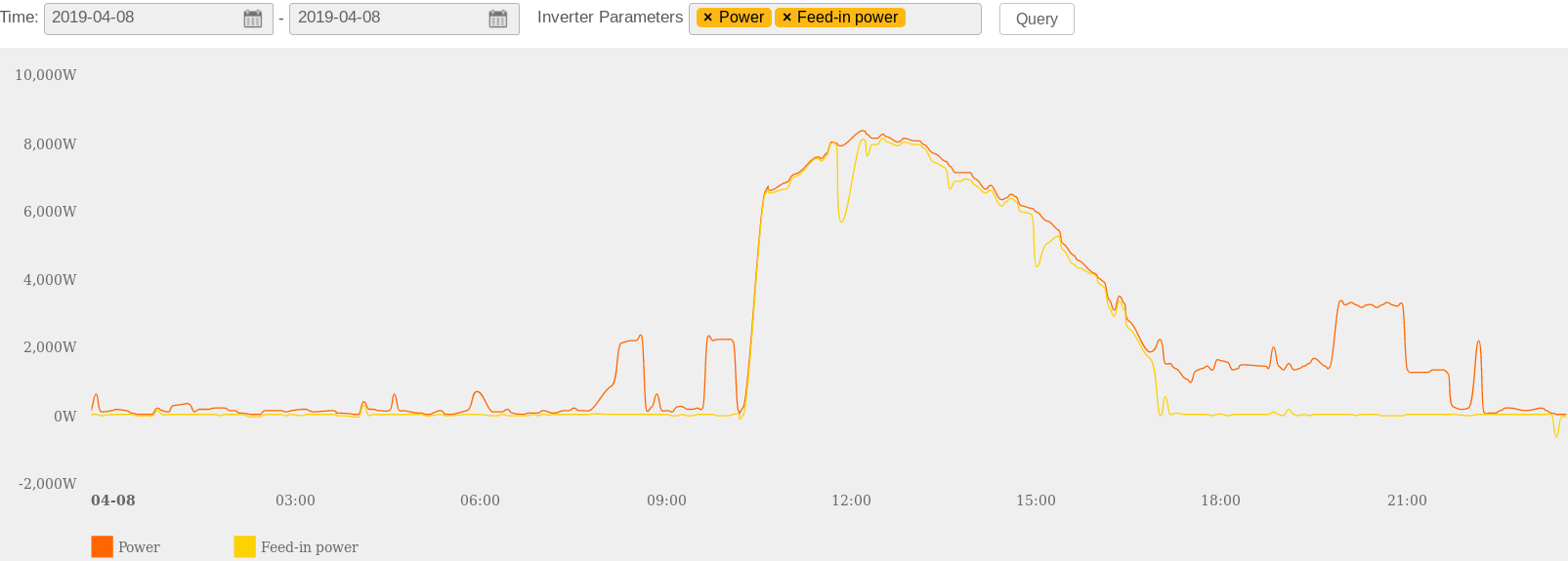 U této elektrárny je ovšem dodávka do distribuční sítě povolena, takže nejde srovnat který střídač udrží na elektroměru přesnější 0 výkon.
