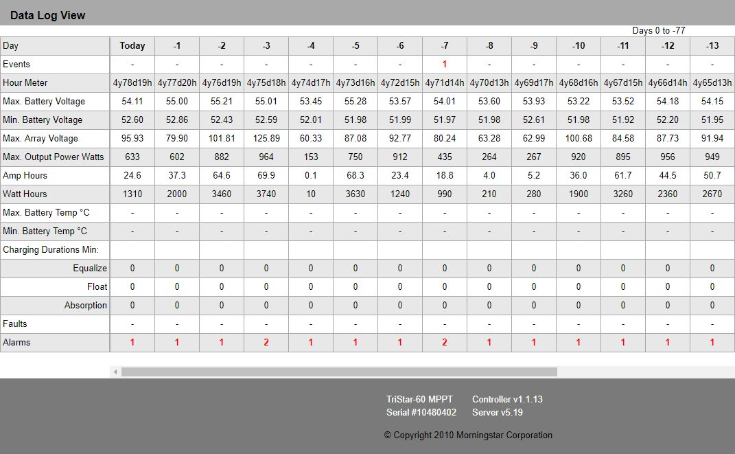 15 kWp JJZ + 3x Tristar MPPT60 + Victron 150/100 + 48V LiFePO 850 Ah + UPS 8kW (MPP-Solar 8048 LC) + 4 x nabíječka 1,2 kW (DELTA) Start: 2012