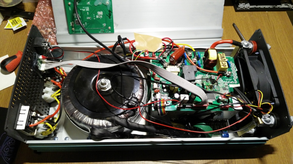 Tak tento týden mě došel měnič LF 24V 5000W a po nahlédnutí dovnitř jsem byl mile překvapen. Měl jsem nachystané feritové jádro, ale výrobce mě předběhnul a začal je tam montovat. Spotřeba naprázdno 0,9A, což vychází na nějakých 23W